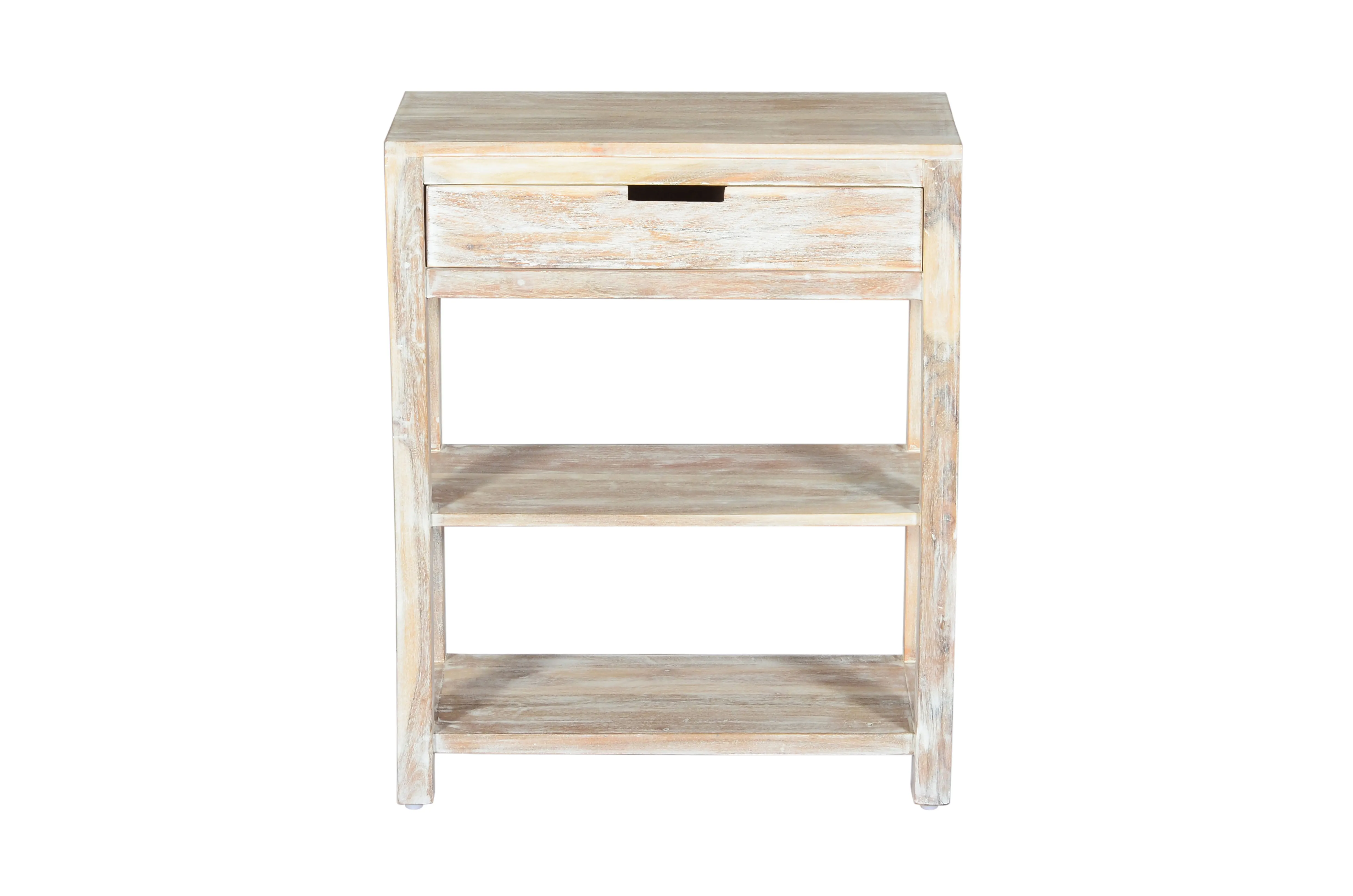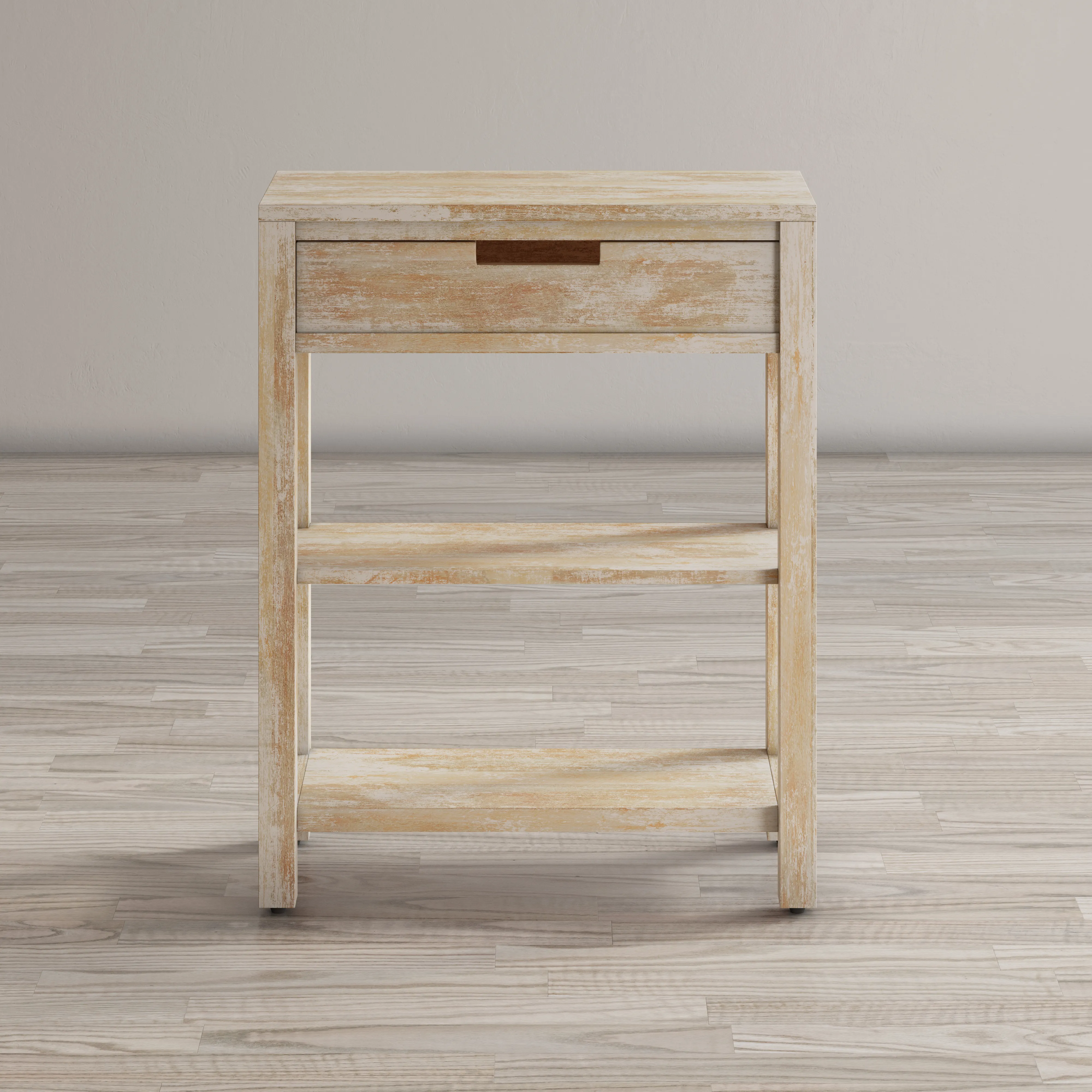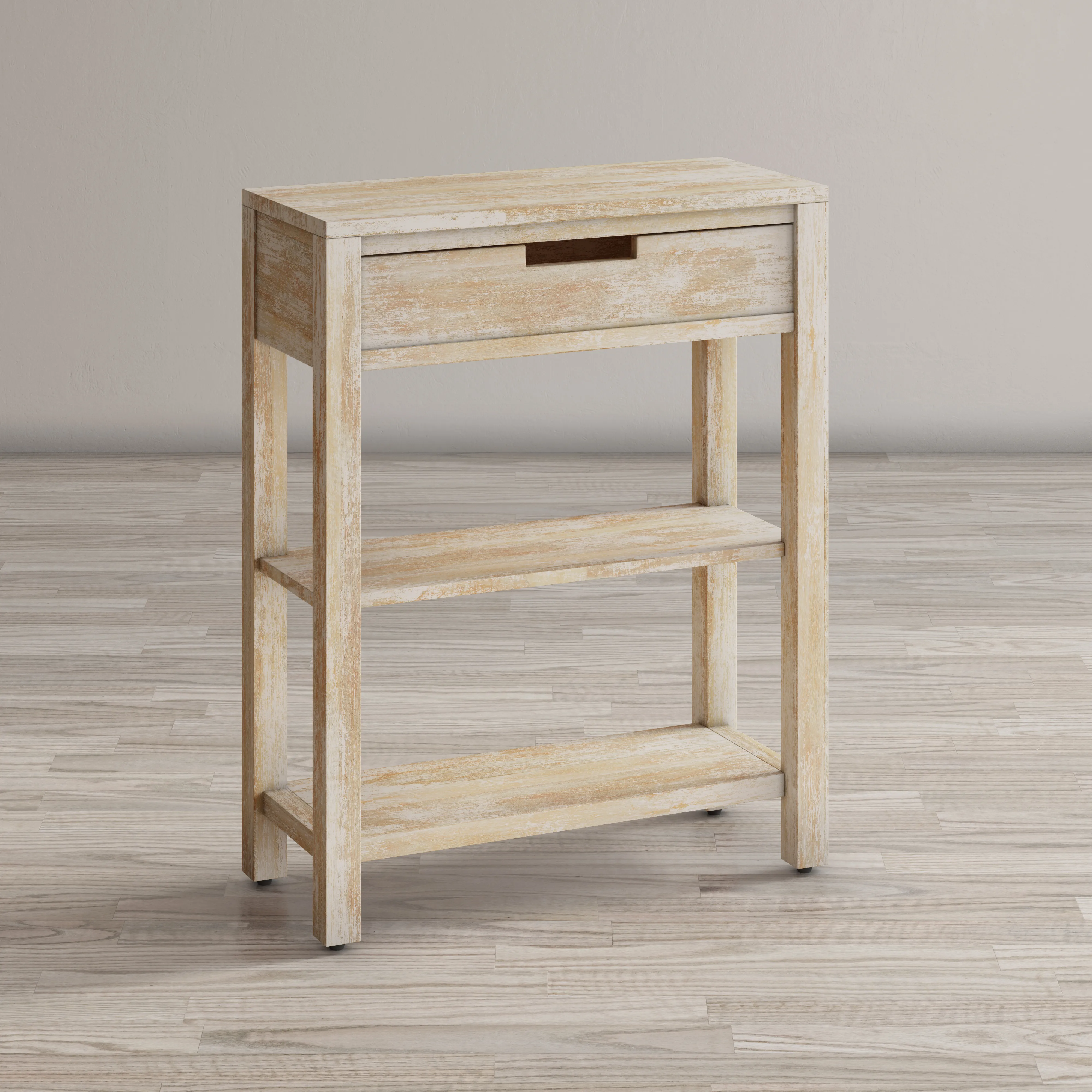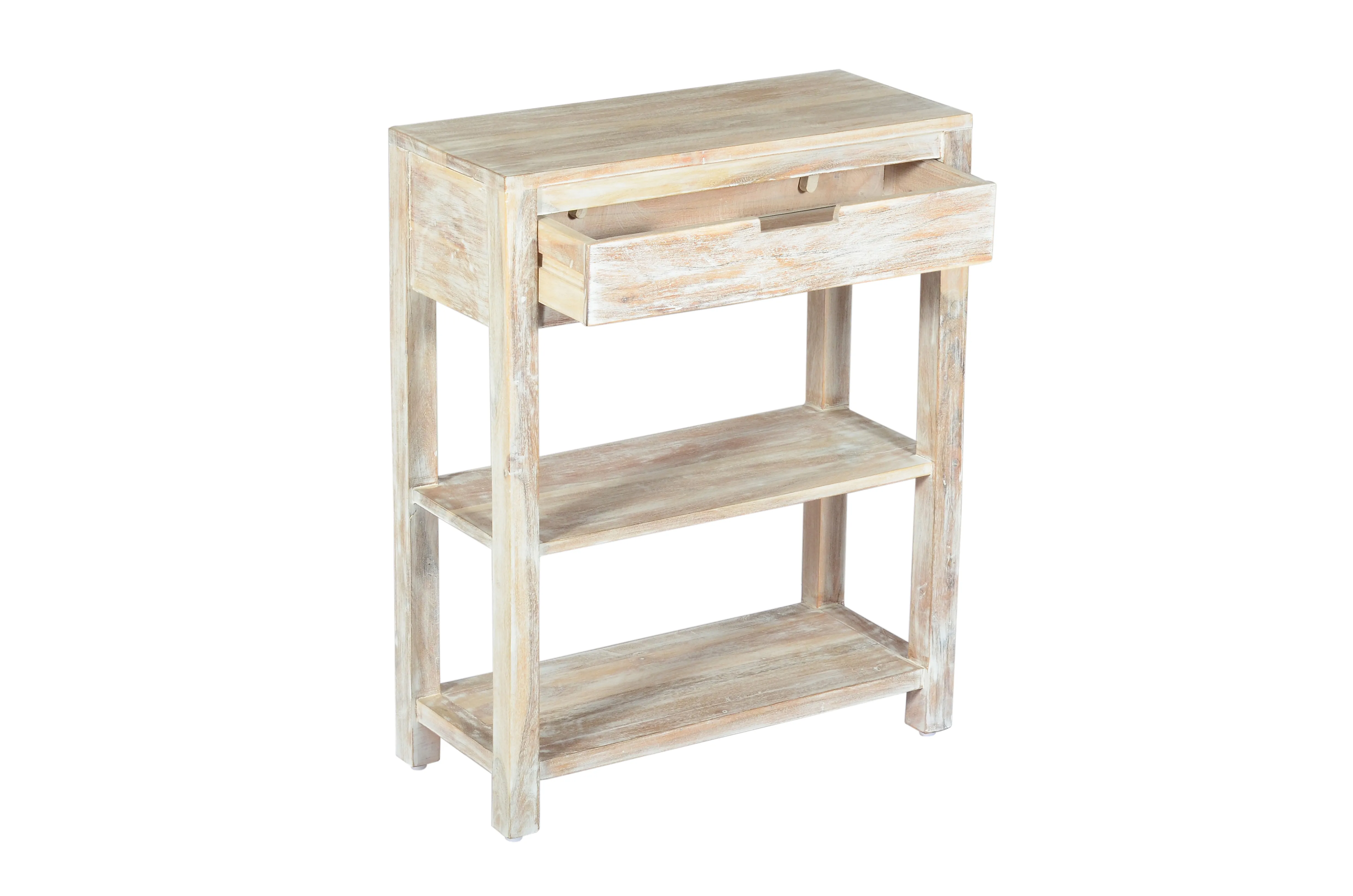 Constructed from solid Acacia and arriving fully assembled, the natural variations in the wood elevate this simple Vermont style accent table into a showpiece of artistry and skill. Standing 30" tall, there are two solid hardwood shelves on the lower part of the table for displaying your treasures while the storage drawer on top provides a little extra storage right at hand. This American classic adds a quaint farmhouse style with sophistication to any room in your home.