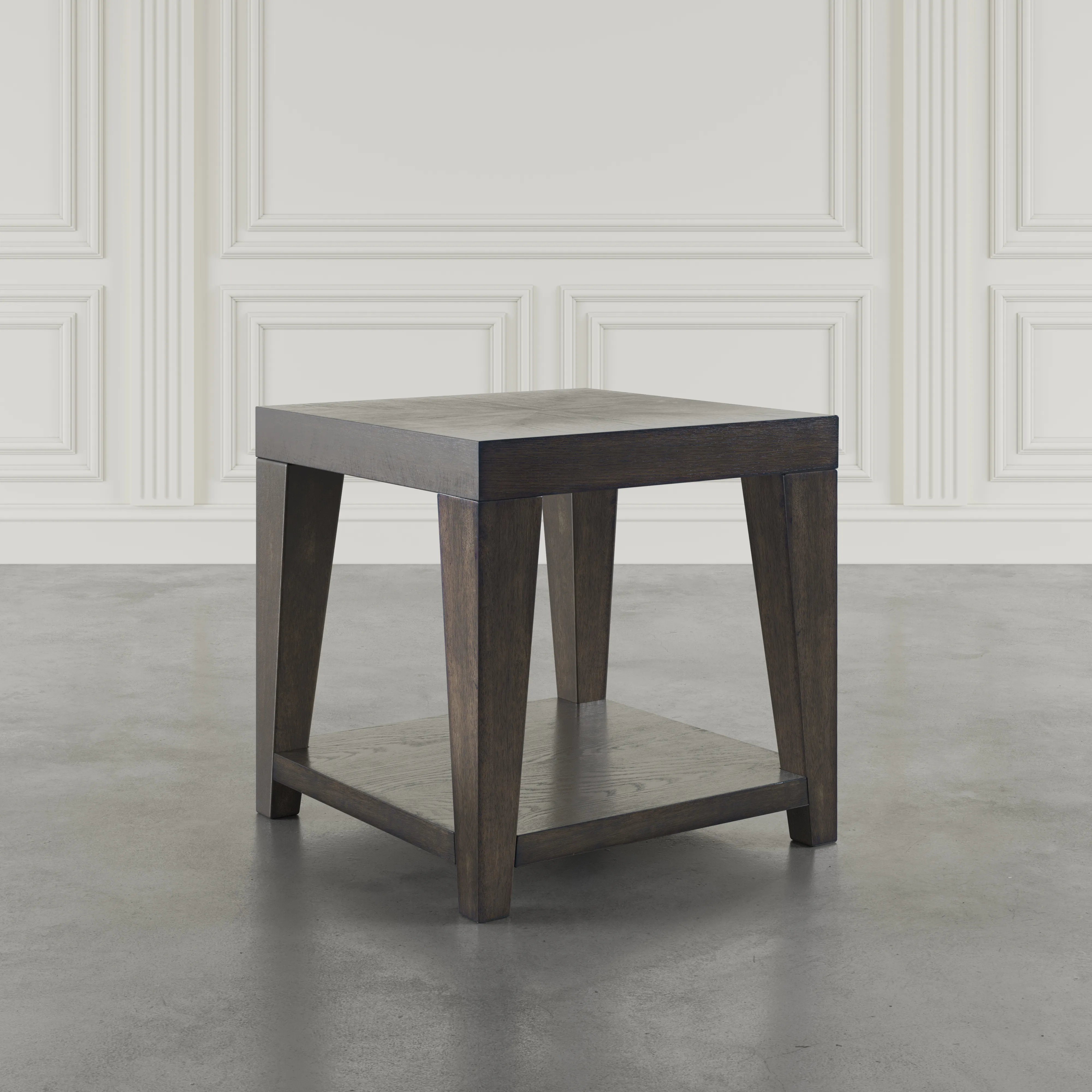 This sleek 24‑inch square end table ventures beyond mere function—its clean, geometric silhouette and rich finish bring a modern yet timeless allure to any living area. The crisp engineered wood and veneer tabletop, paired with solid rubberwood legs, promises both visual appeal and long‑lasting stability. An open shelf beneath offers space to showcase décor or tuck away everyday essentials, all while maintaining a compact footprint that integrates seamlessly into cozy corners or beside seating arrangements. Whether as a stylish perch for a reading lamp or a soft landing spot for a favorite book, this end table adds a touch of elegance with quietly confident design.