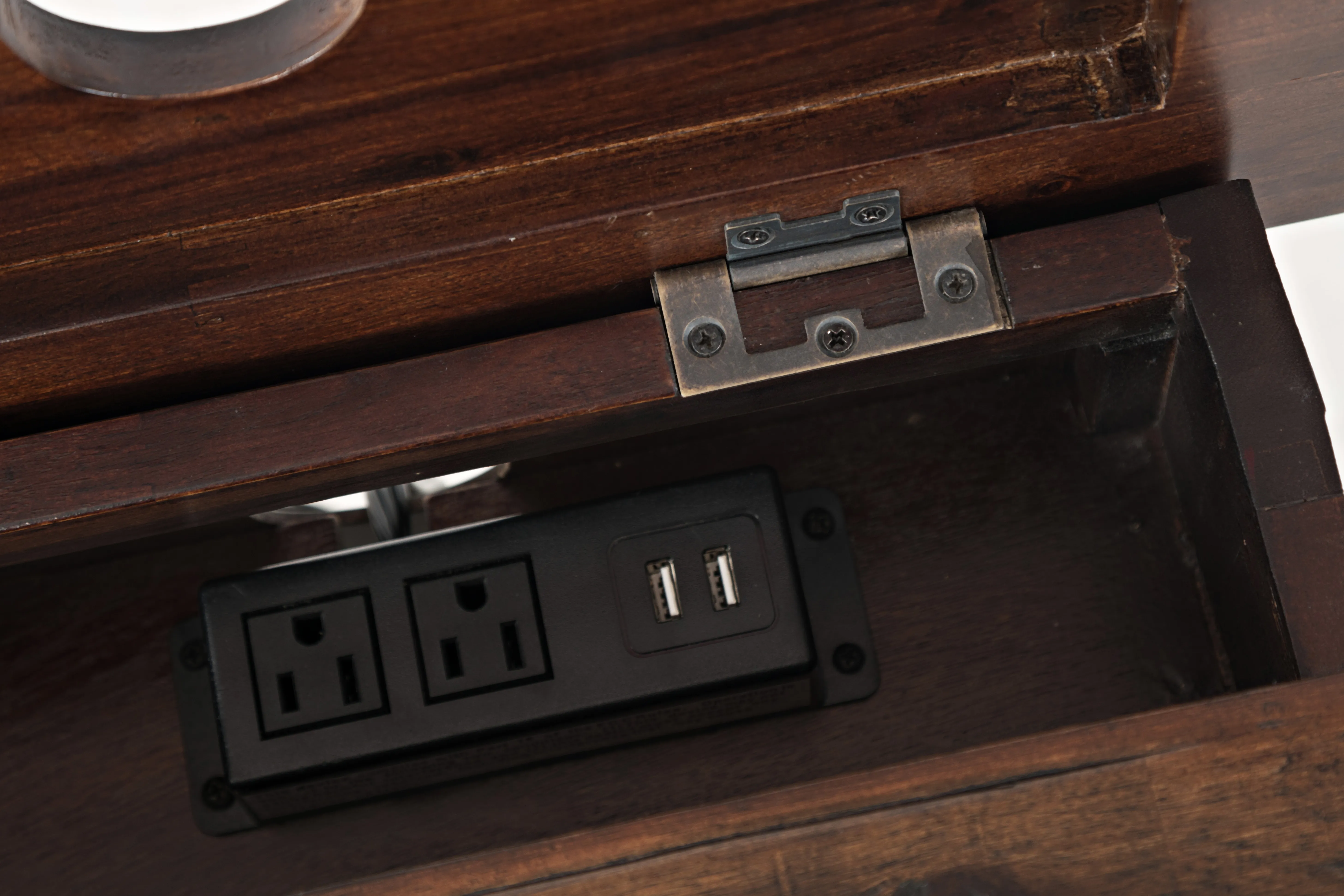 With a beautiful combination of rustic charm and unique hand-finished distressing on the drawer front, the Painted Canyon USB Charging End Table is the perfect upgrade for your living room. Made from solid Acacia hardwood, the natural material is wonderfully unique and has subtle detailing that compliments any style decor with three built in drawers and a hidden charging station for keeping all your devices powered.