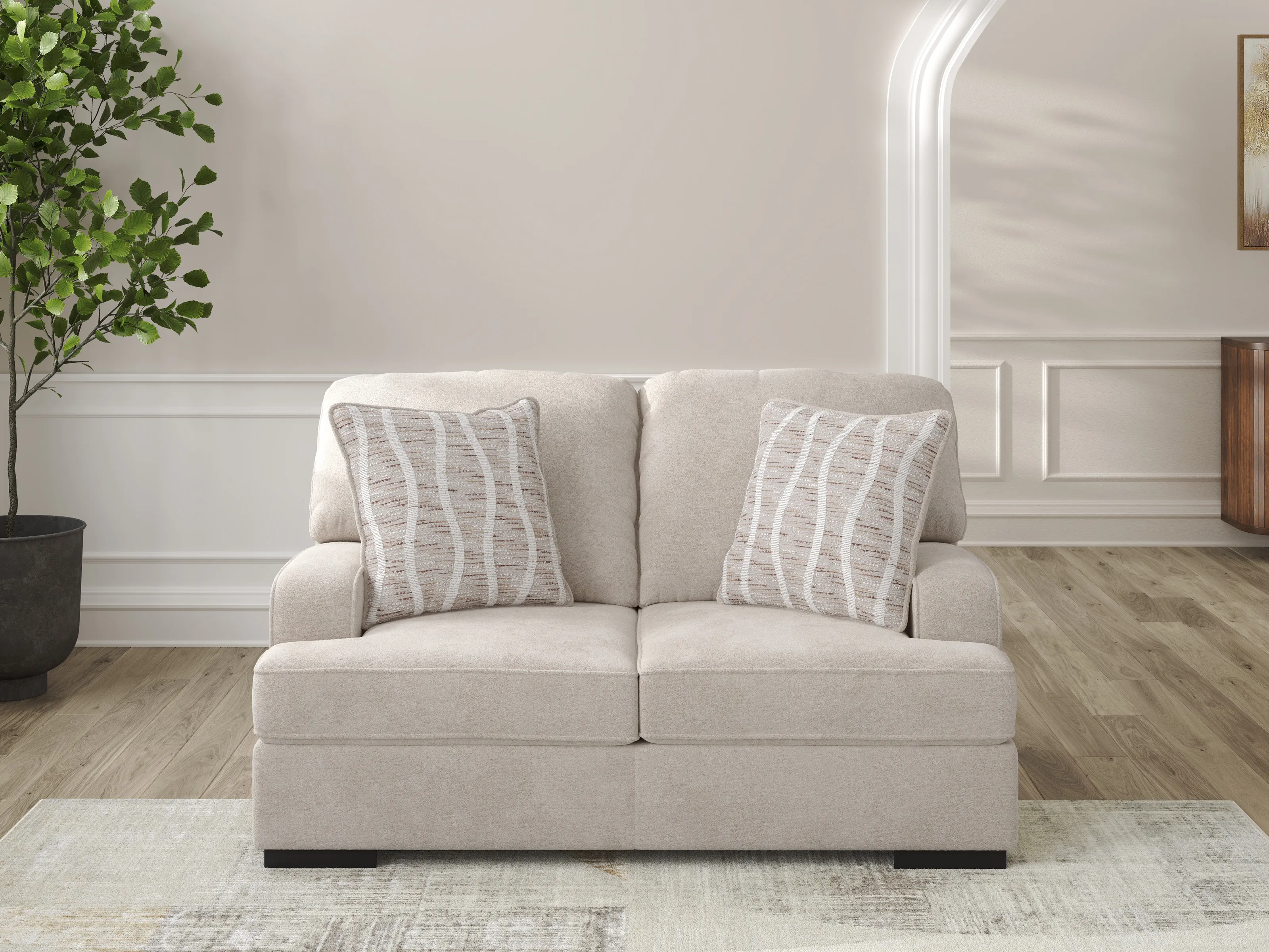 Modern comfort meets classic staying power in this loveseat. With its deep seats and luxuriously soft fabric, you'll stay cozy during morning lounging and movie nights. And refreshing the reversible cushions is as simple as flipping them over. This loveseat's versatile upholstery adapts to your existing decor, so you can effortlessly update your style as trends change.