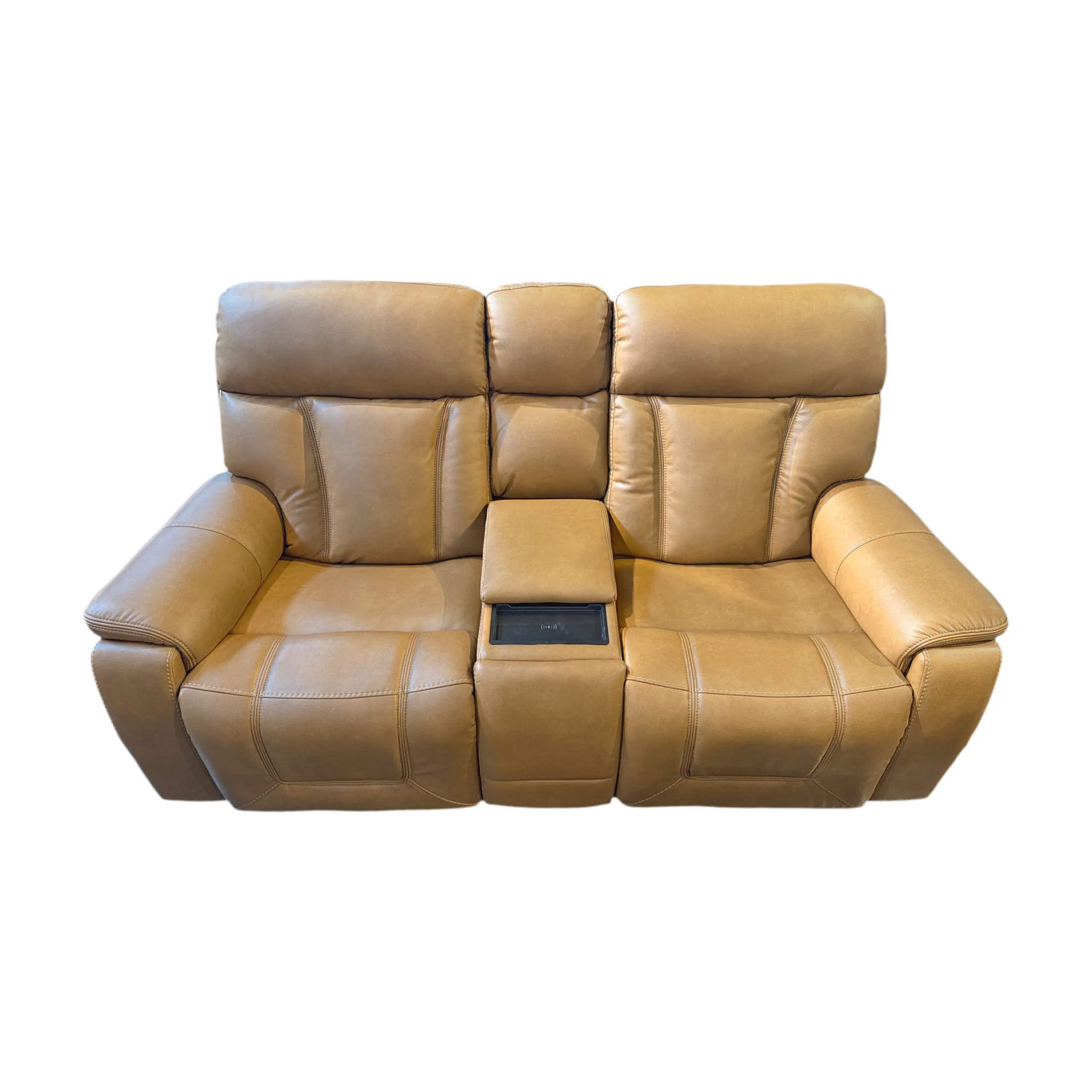 MotoMotion Fraser Immersive Audio Leather Console Loveseat (Triple Power w/ Speakers) – Caramel Brown