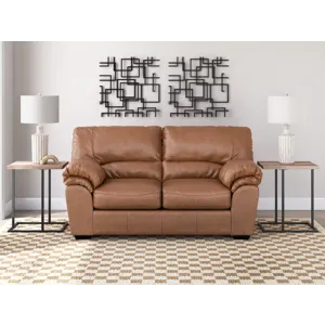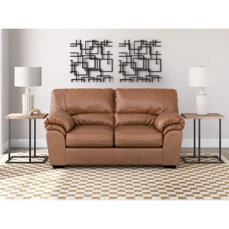 The Ashley Whitlock Loveseat brings modern comfort and contemporary flair together in a clean-lined, effortlessly stylish design. Wrapped in soft, durable faux leather available in Caramel or Umber, it pairs an upscale look with everyday practicality. Jumbo contrast stitching and tailored details add a high-fashion touch, while the plush cushions invite you to settle in and relax. Perfect for today’s living spaces, this loveseat delivers both visual warmth and long-lasting comfort.