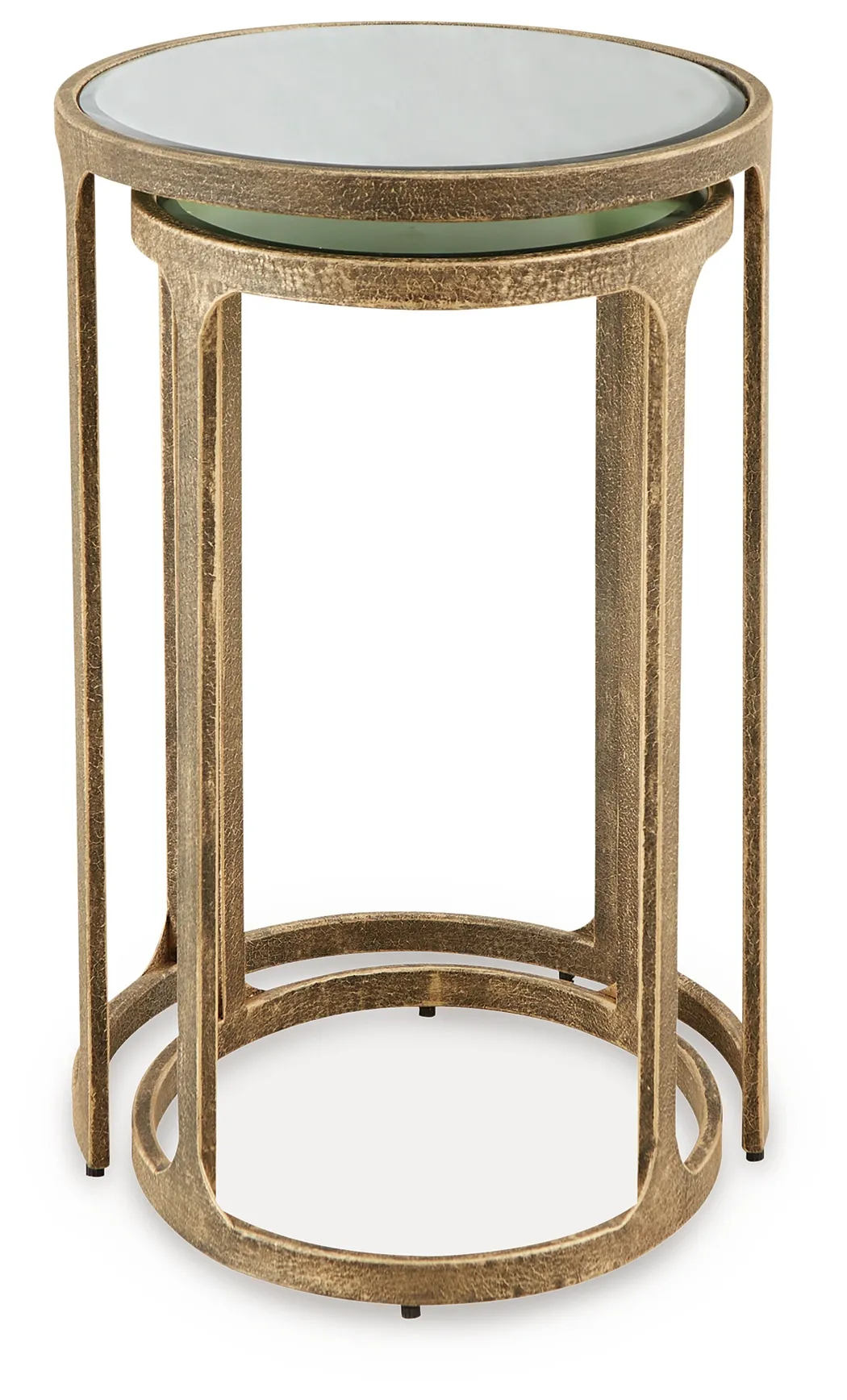 The Irmaleigh Gold Mirror Accent Table Set brings timeless elegance and classic charm to any room. Designed with antiqued goldtone metal bases and beveled mirrored tops, these tables instantly brighten your space with reflective dimension and subtle glam. Their nesting design offers versatile styling—display them together for layered sophistication or separate them to accent different areas of your home. Perfect for traditional, transitional, and chic interiors alike, this set elevates décor with effortless grace.