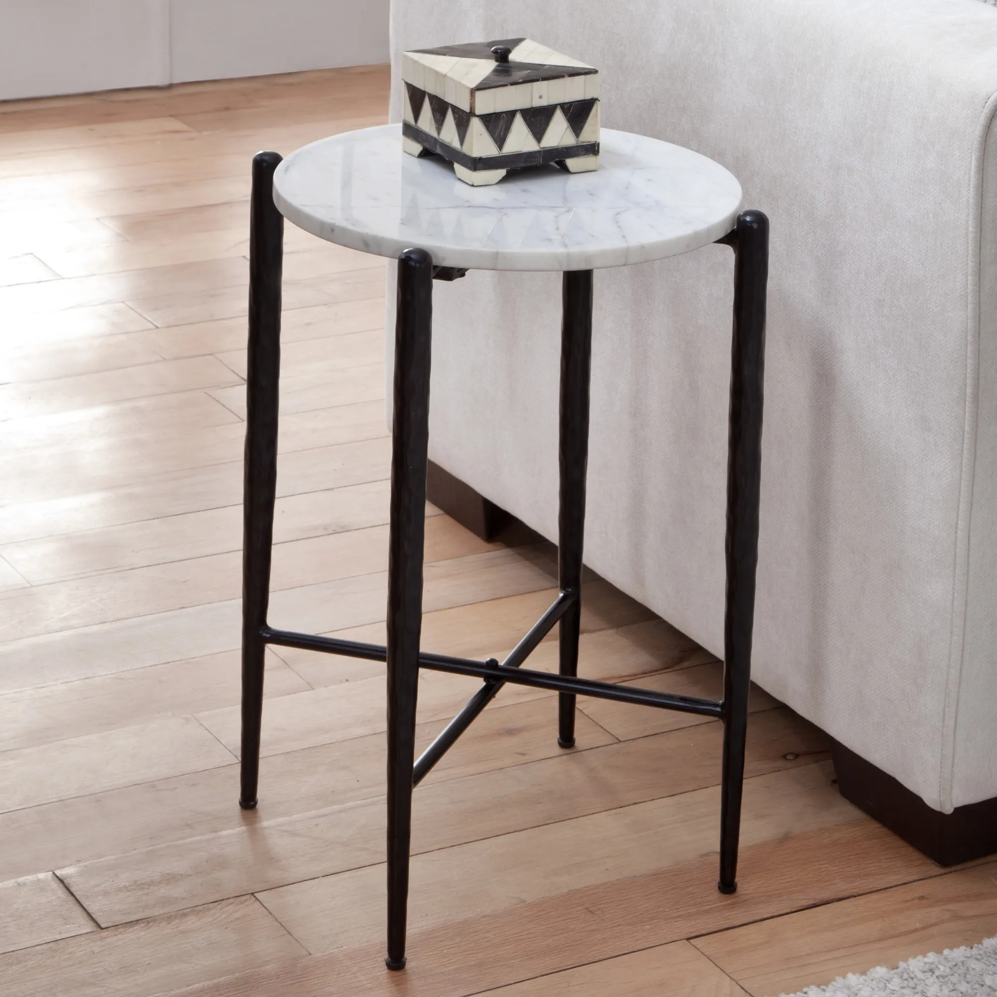 Loxie White Marble Top Round End Table