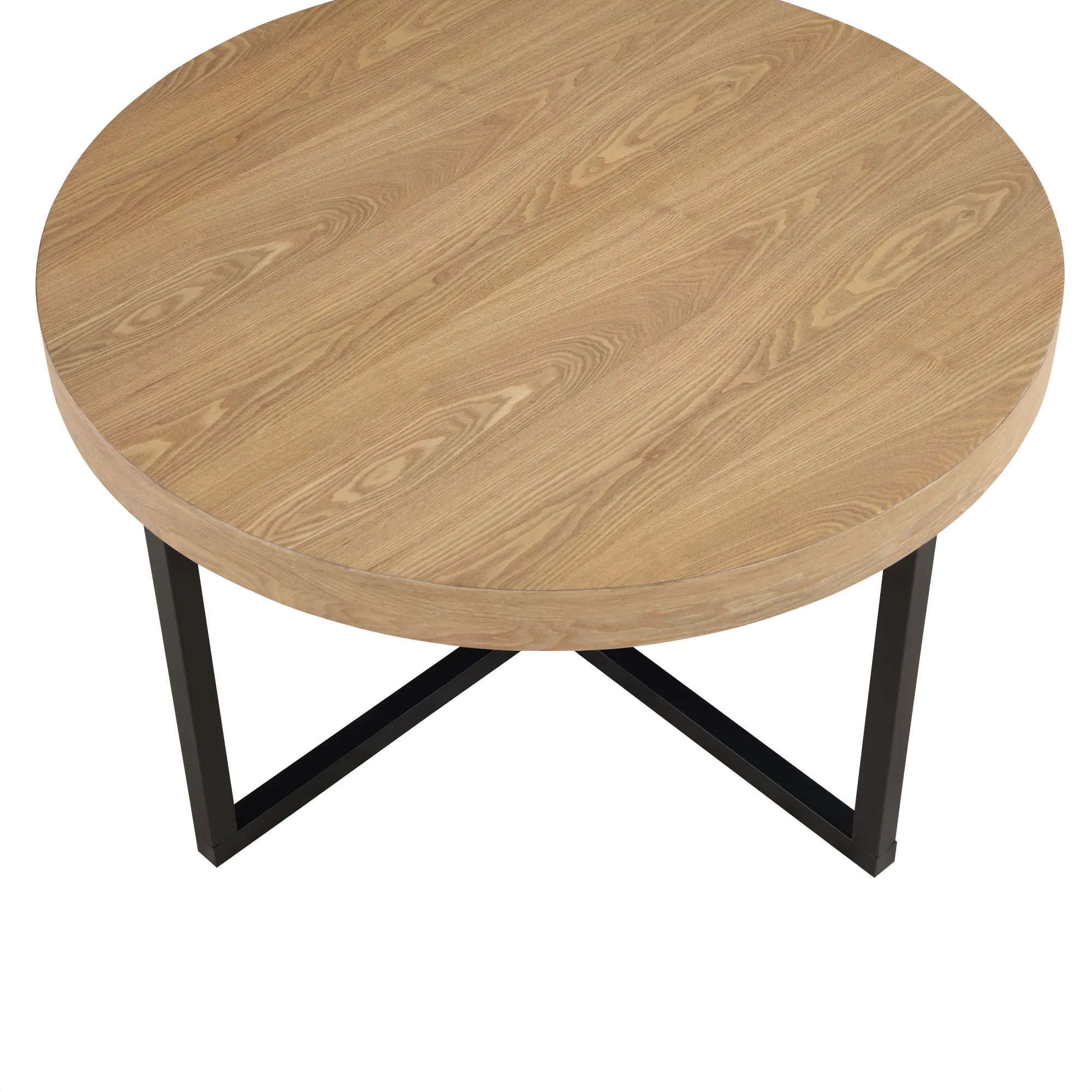 - Mixed media styling combines ash veneered top with ebony iron finish for a dynamic look