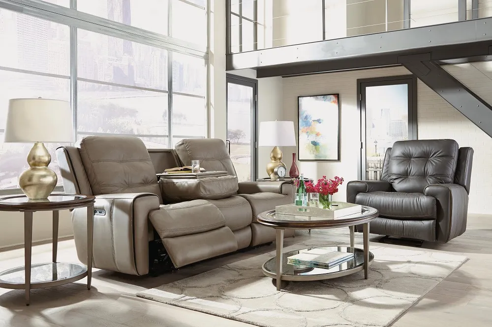 Trendy style with puckered stitching and contrasting seams. A contrasting seam in a complementary shade gives a pop of color along the front shape of the arm and the recessed back wings. Wicklow’s frame is also highlighted with horizontal seams and puckered stitching contouring the back and seat cushions for a beautiful eye-catching effect. Enjoy smoothly gliding back and forth or reclining from an upright to a fully reclined position. A power reclining mechanism lets you change angles effortlessly with the touch of a button, and a dual power button allows you to independently adjust the headrest for custom relaxation.