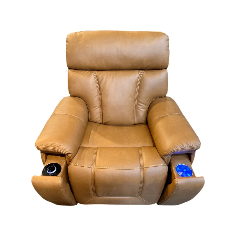 Experience luxury, technology, and comfort in perfect harmony with the MotoMotion Fraser Immersive Audio Leather Recliner. Upholstered in rich Caramel Brown top-grain leather, this recliner blends modern design with cutting-edge innovation. Featuring Triple Power reclining, Zero Gravity support, and a Bluetooth-integrated audio system with dynamic surround sound, Fraser transforms any space into a premium entertainment zone. Built-in ambient lighting and smart charging complete this high-end home-theater essential.