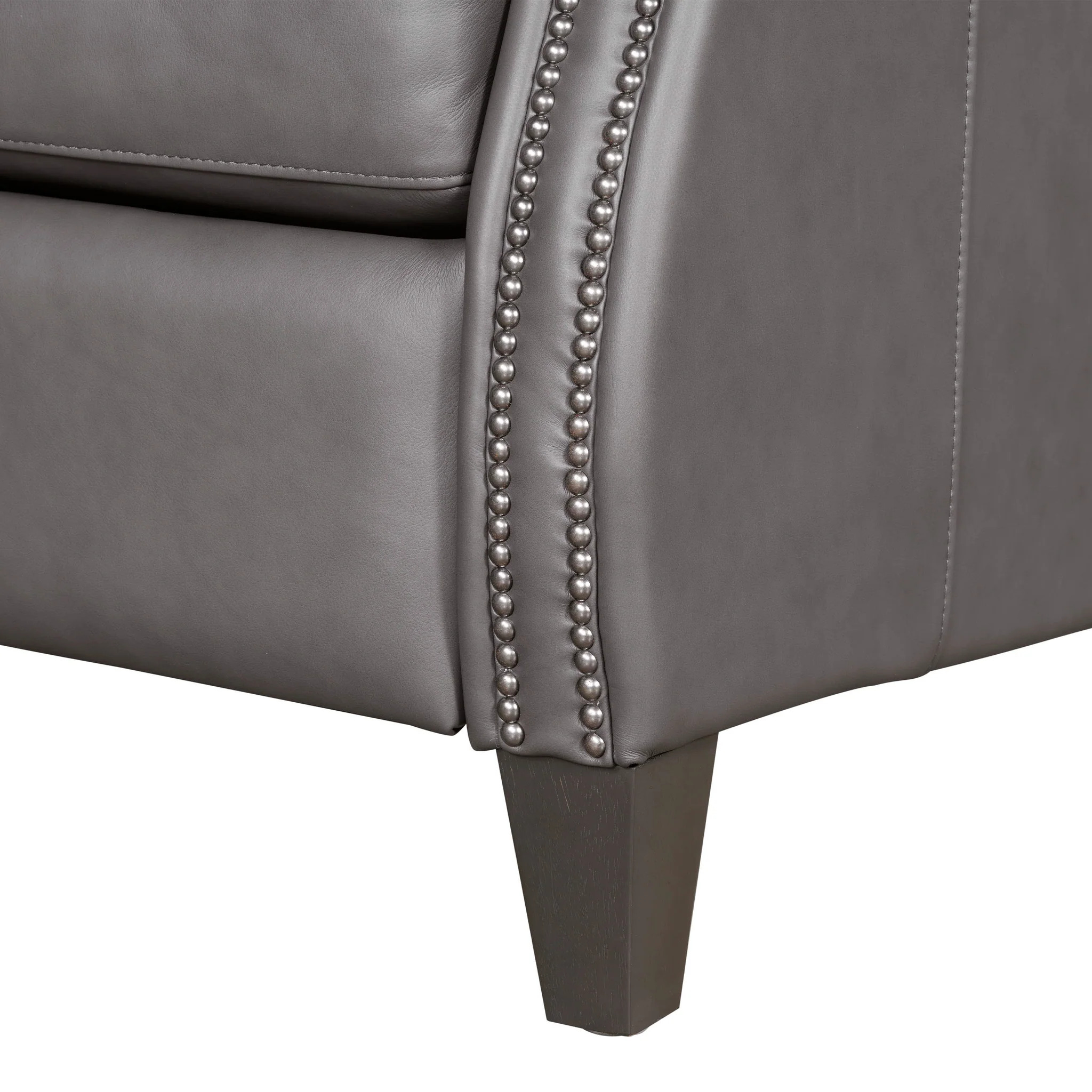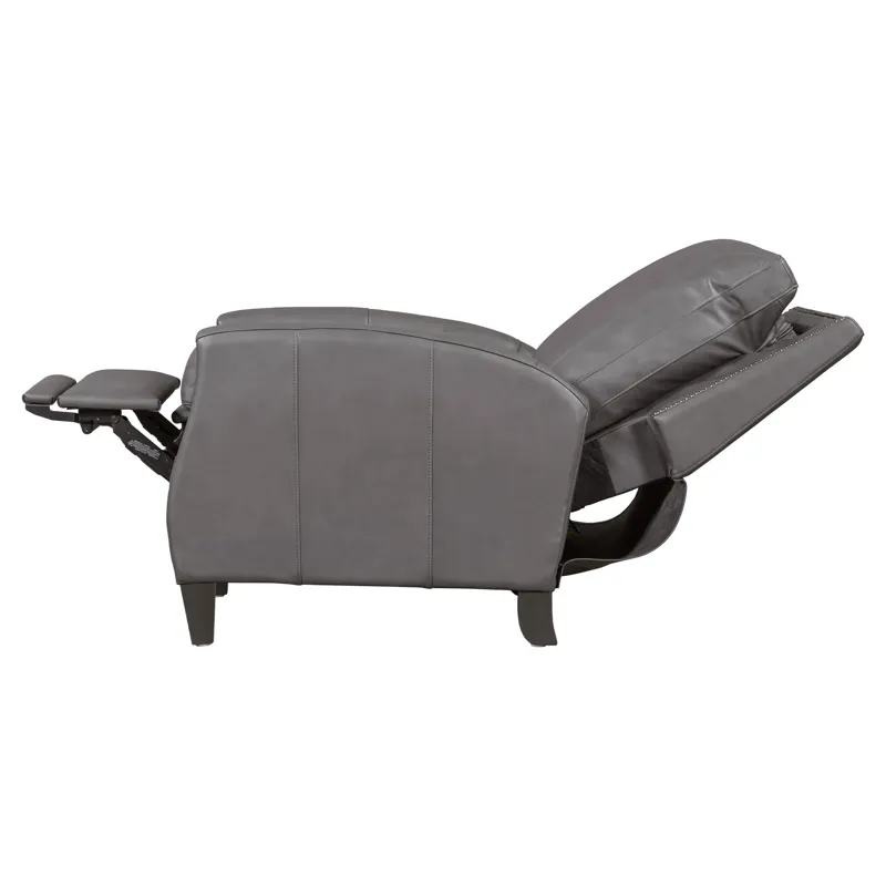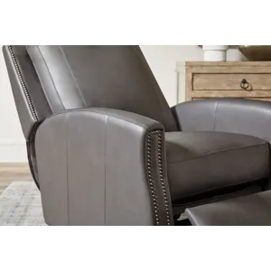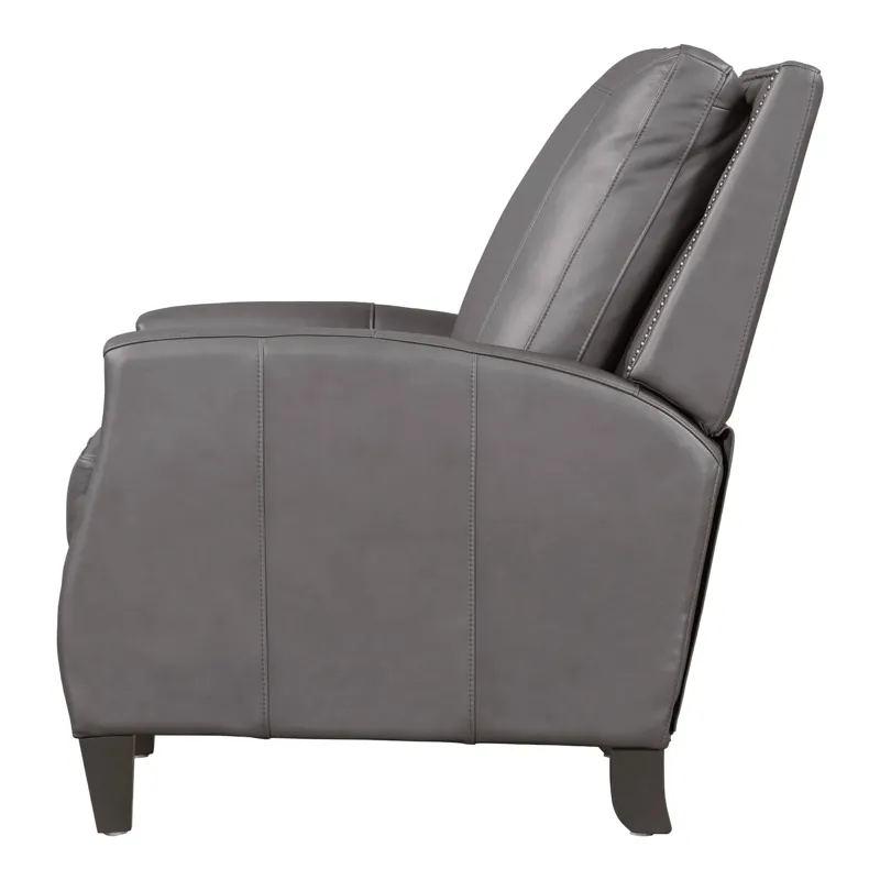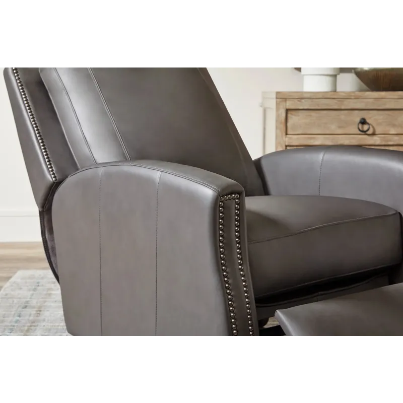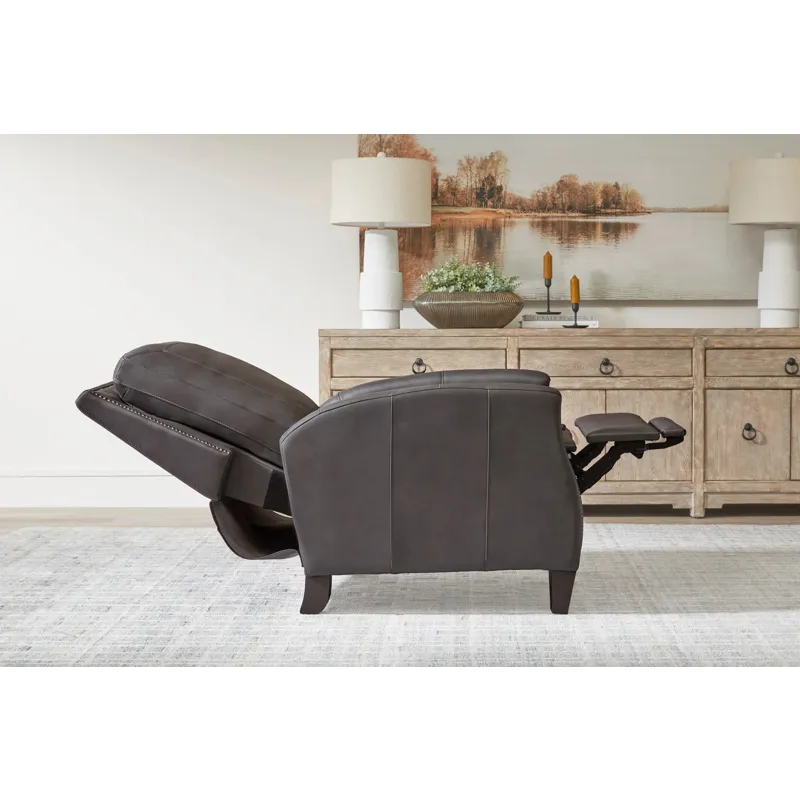 Designed with a square back and plush padding, the Hunter provides exceptional support, complemented by bronze nailhead detailing that adds an element of traditional elegance. The high-leg silhouette offers the look of a stationary accent chair, enhanced by sleek lines and meticulous tailoring. Whether in Echo Grey for a modern statement or Chestnut Charm for a warm, inviting tone, the Hunter recliner elevates comfort and sophistication in any setting.