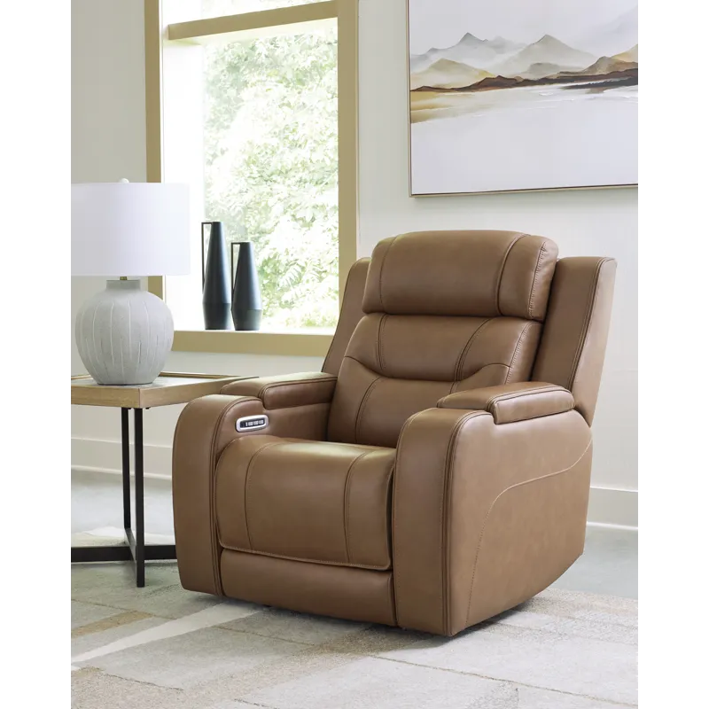 Ashley Dreamer Power Recliner with Immersive Audio Seating – Caramel