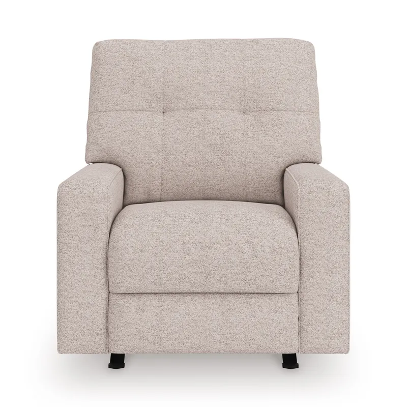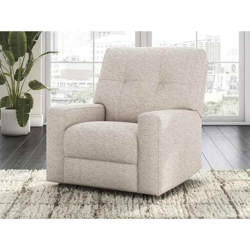 Sincere in its styling, this recliner marries classic function with modern design elements for truly transitional appeal. Its track arms lend a contemporary vibe, while easy pull tab reclining ups the comfort level. And with the recliner's goes-with-anything neutral upholstery, styling is made simple. All that’s left for you to do is sit back and relax.