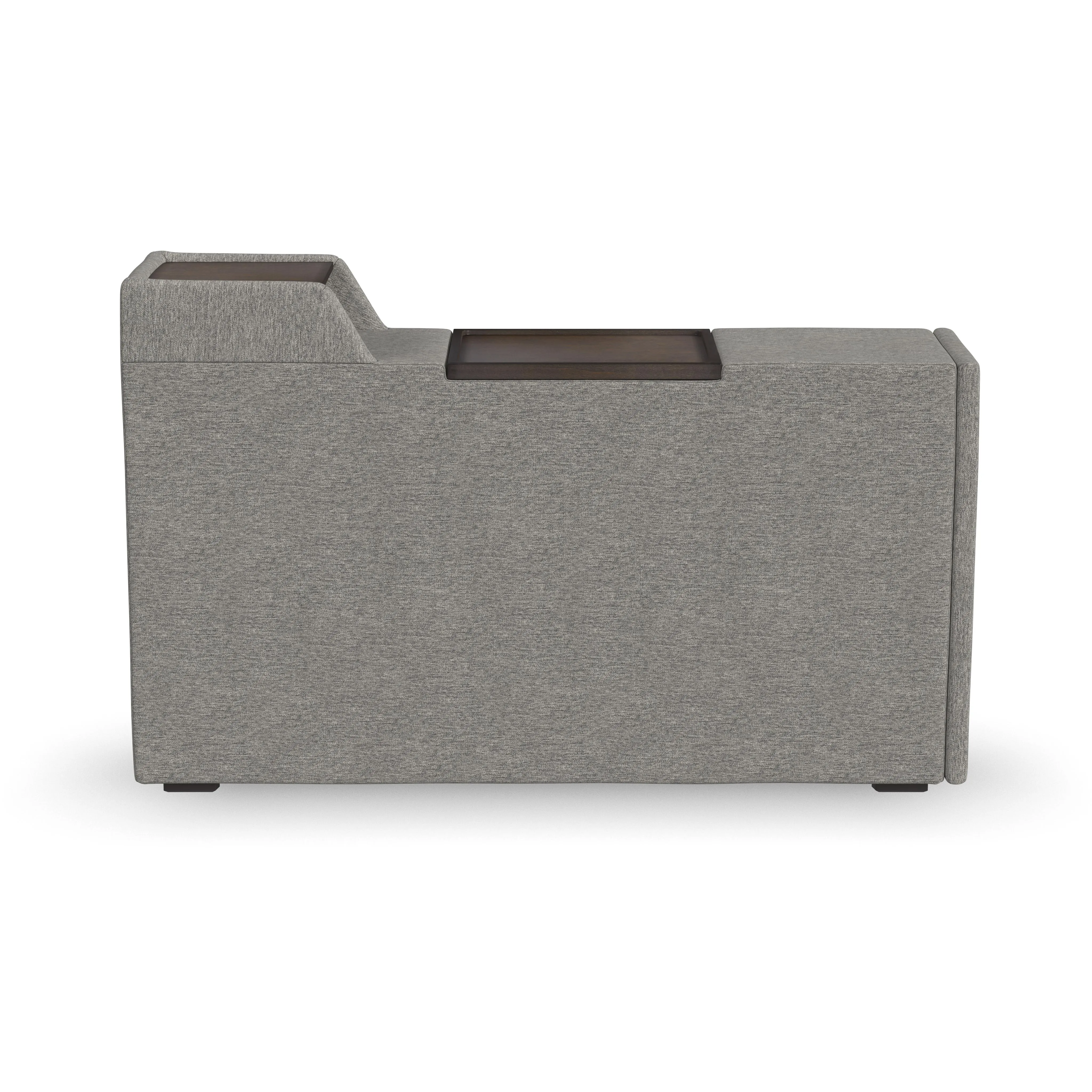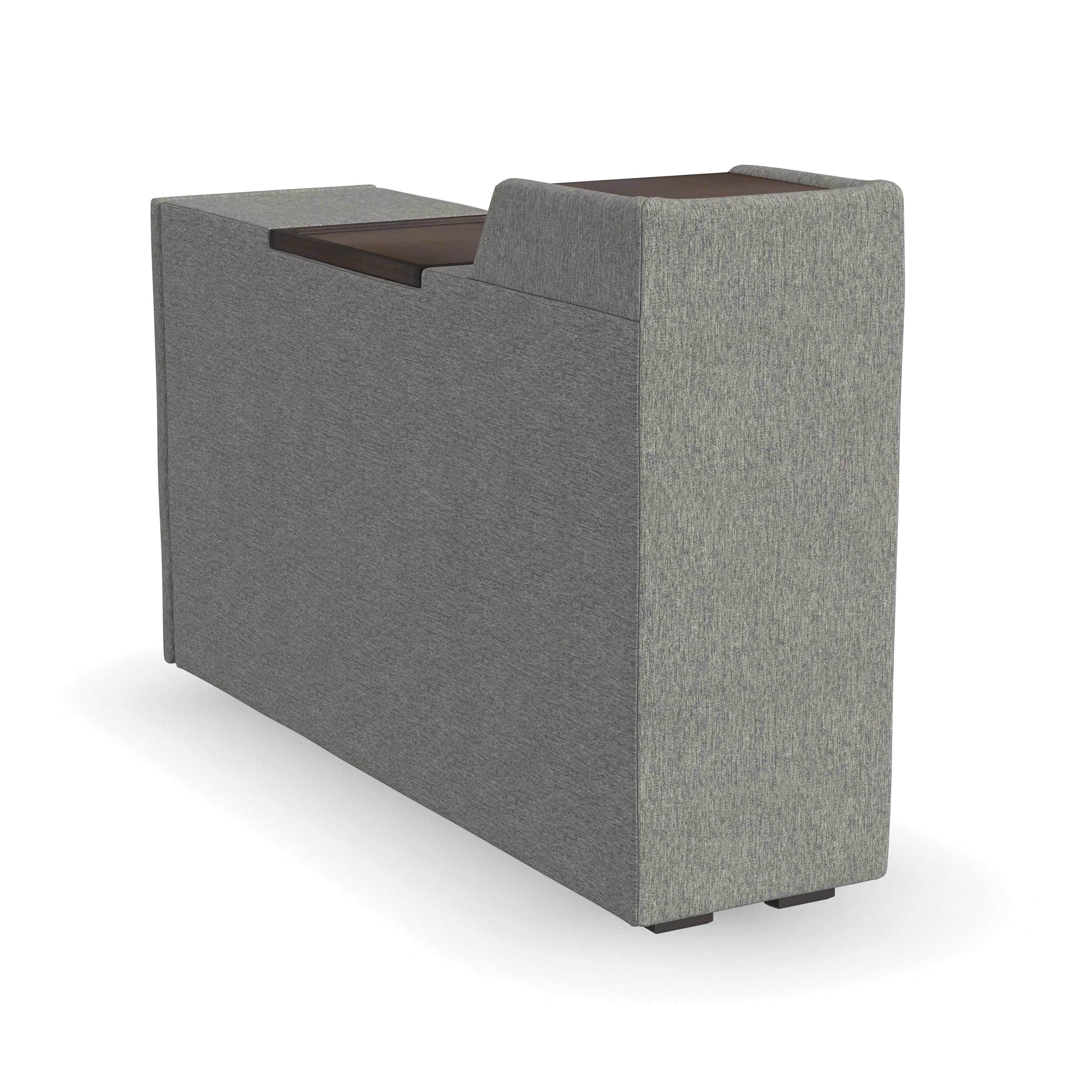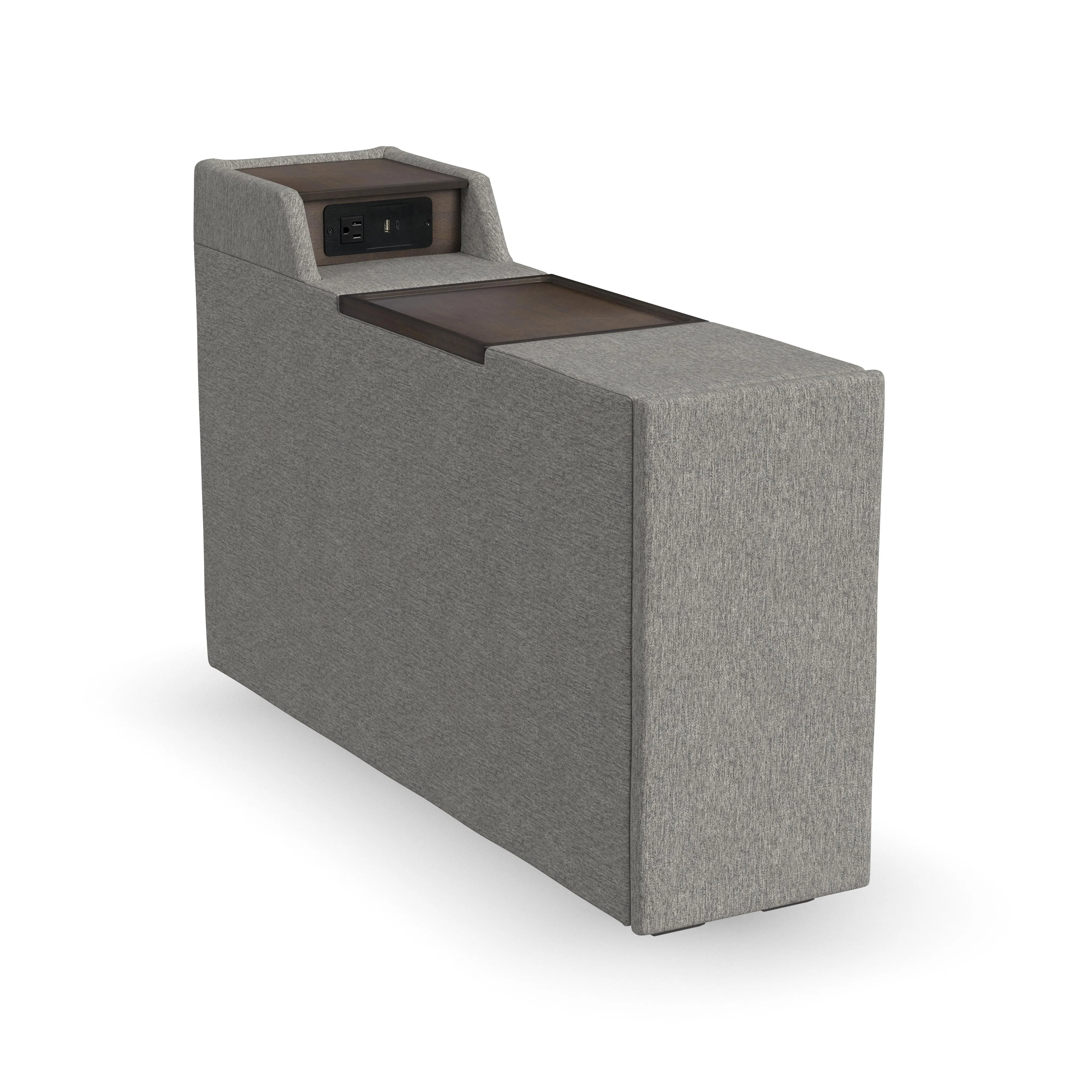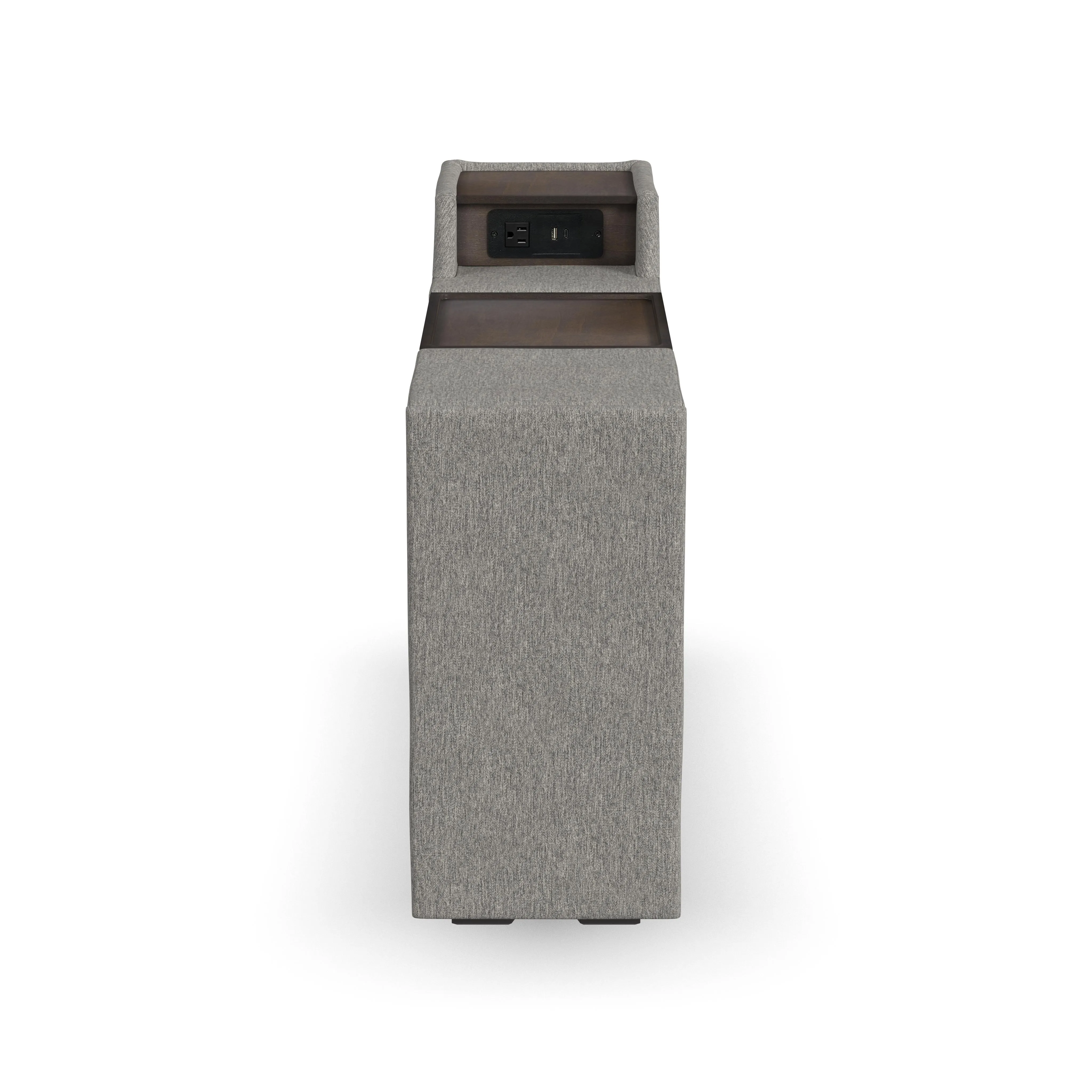 Evolve your Flex modular seating system with the Flex narrow hub. Designed with family functionality in mind, this hub provides easy and clean storage. The main compartment fits belongings under the removable wood tray. A pop-out cupholder provides a spot for a drink while the upper tray keeps electronics powered up. Upholstered in sustainable, stain-resistant performance fabric that is easy to clean. Attaches to any Flex seat in seconds with a C-Clip.