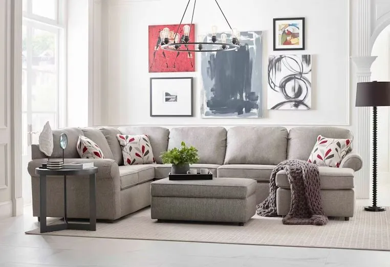 Decorate your room any way you want with this versatile seating sensation by England. Clean lines, welted seat cushions, and contrasting throw pillows enhance this group's modern look. Best of all, our unique InterLoch connections keep your sectional pieces together. Seat cushions include a 10-year DuraCushion Warranty.