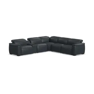 Treat yourself to a comfortable yet refined sitting experience with the Henry power reclining sectional with power headrests and lumbar. This piece features a generously scaled frame, contoured seats, and padded arms with a unique sculptural shape and welt trim. Choose from six components to build the perfect configuration for your home. Power recline, headrests and lumbar controls on both ends allow for customized comfort, and included USB ports provide convenient device charging. Our Zero Gravity recline technology gives the feeling of weightlessness while our patented Blue Steel Spring provides lasting seat support. Choose from three top-grain leather options to suit your style.