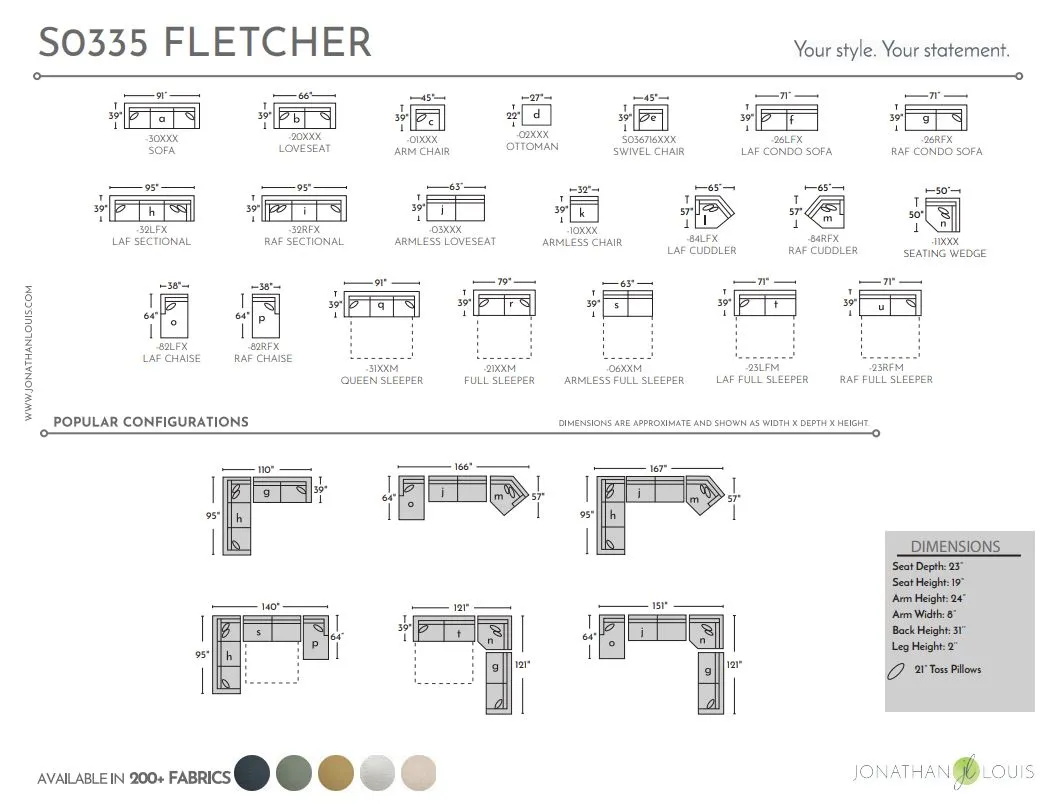 The sturdy construction and high-quality materials ensure that your Fletcher 3pc Sectional remains a cherished part of your home for years to come. With hundreds of fabric styles to choose from, you can personalize this sectional to perfectly match your decor and taste, making it uniquely yours. Perfect for entertaining guests or enjoying a cozy night in, the Fletcher 3pc Sectional is the ultimate addition to any living space.