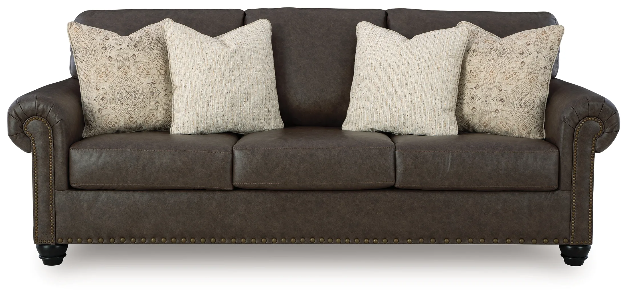 This sofa sleeper marries classic character with a contemporary attitude. Love the timeless look of leather? Its take on deep brown faux leather is versatile enough to pair with styles from traditional to modern, at a price that won’t break the bank. Details like nailhead trim and roll arms polish off the piece with flair. And when visitors drop in for the night, simply pull out the comfortable queen memory foam mattress for an instant guest bed.