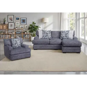 Franklin Corporation's Sapphire Collection blends versatility with modern comfort. Featuring a stylish sofa with a reversible chaise for customizable lounging and a matching swivel chair for added flexibility, this collection is perfect for relaxing or entertaining. Plush cushions and chic design details make the Sapphire a standout addition to any space.