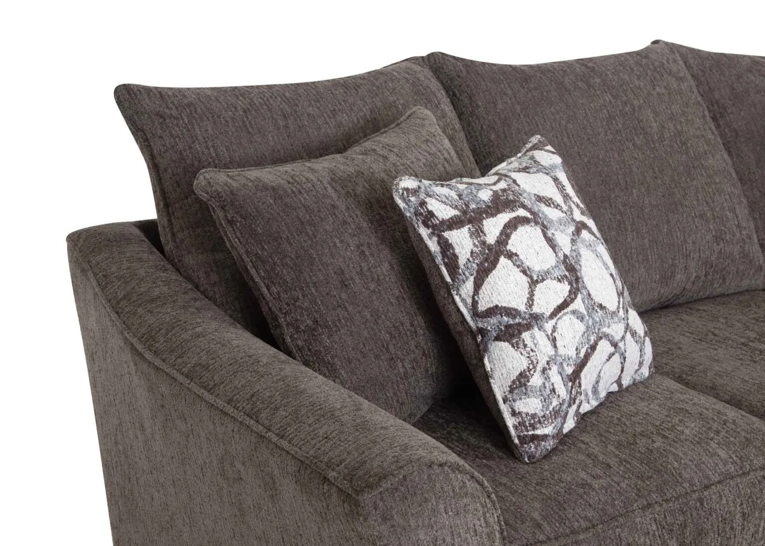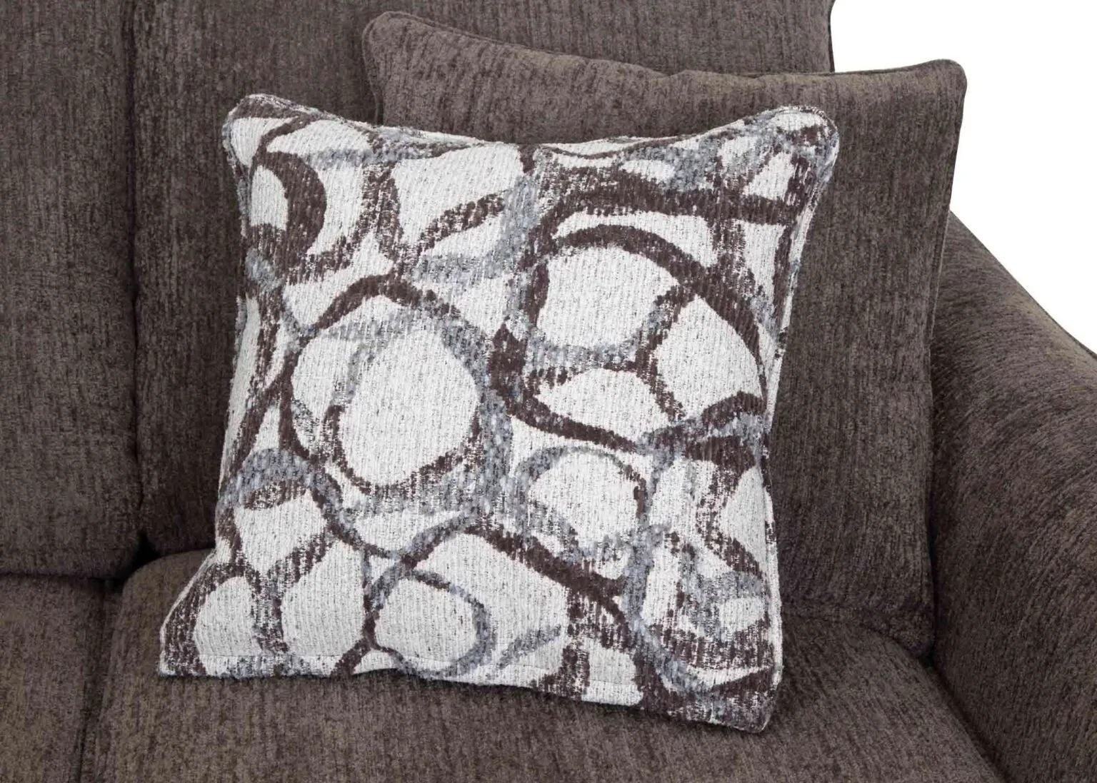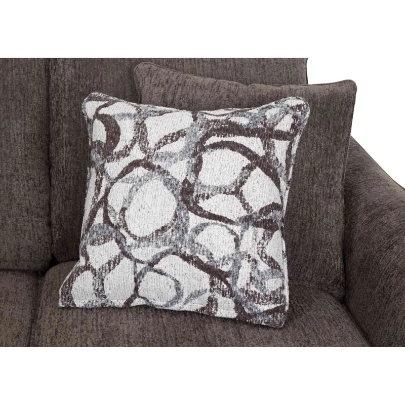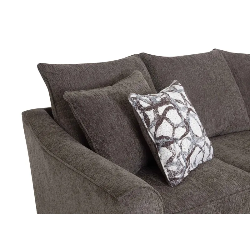 Experience a touch of “flare” with the meticulously crafted 910 Tiffani Collection. This thoughtfully designed collection includes a sofa, loveseat, chair and half and matching ottoman. All pieces are upholstered in a soft, durable gray fabric that is contrasted with coordinating accent pillows. Flared arms add a contemporary element, while solid wooden legs provide increased durability.