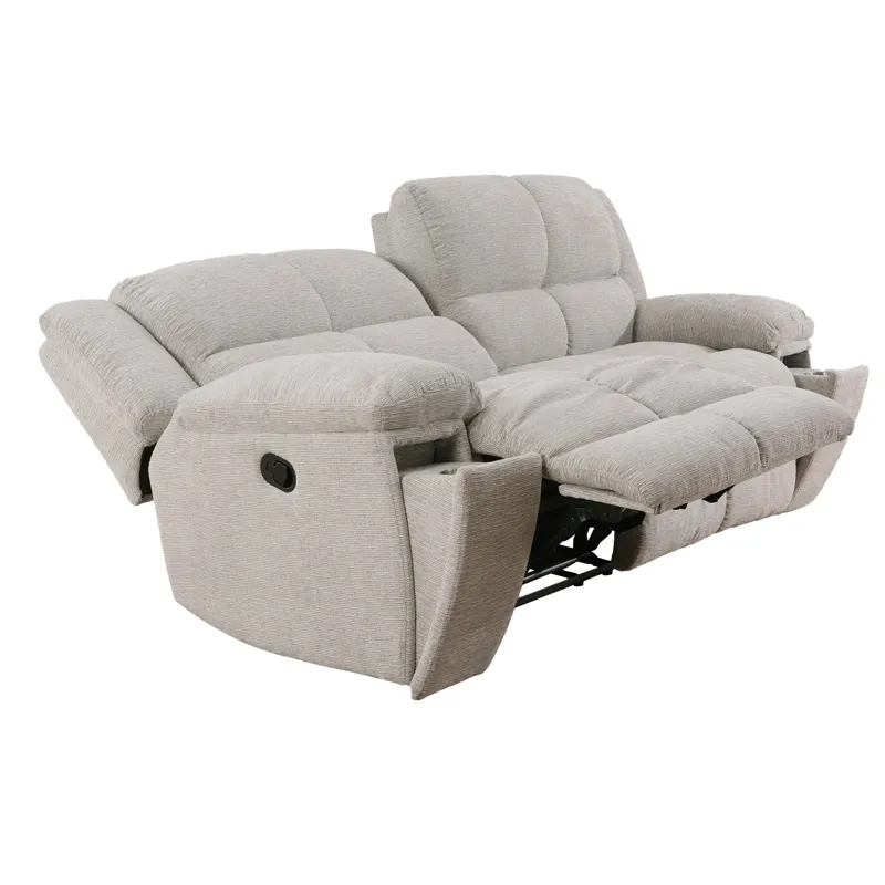 The Parker House Buster Manual Dual Reclining Sofa redefines relaxation with its perfect blend of luxurious comfort and smart functionality. Upholstered in a high-grade plush velvet cover in elegant Opal Taupe, this sofa offers a soft, inviting feel that’s also easy to clean and maintain. Deeply cushioned seats and overstuffed chaise footrests cradle you in cloud-like comfort, while hidden cup holders inside each arm add modern convenience without compromising the sofa’s sleek silhouette. Designed for the whole family to enjoy, its easy-to-use manual reclining latches make it effortless to find your ideal position for movie nights, reading, or quiet downtime.