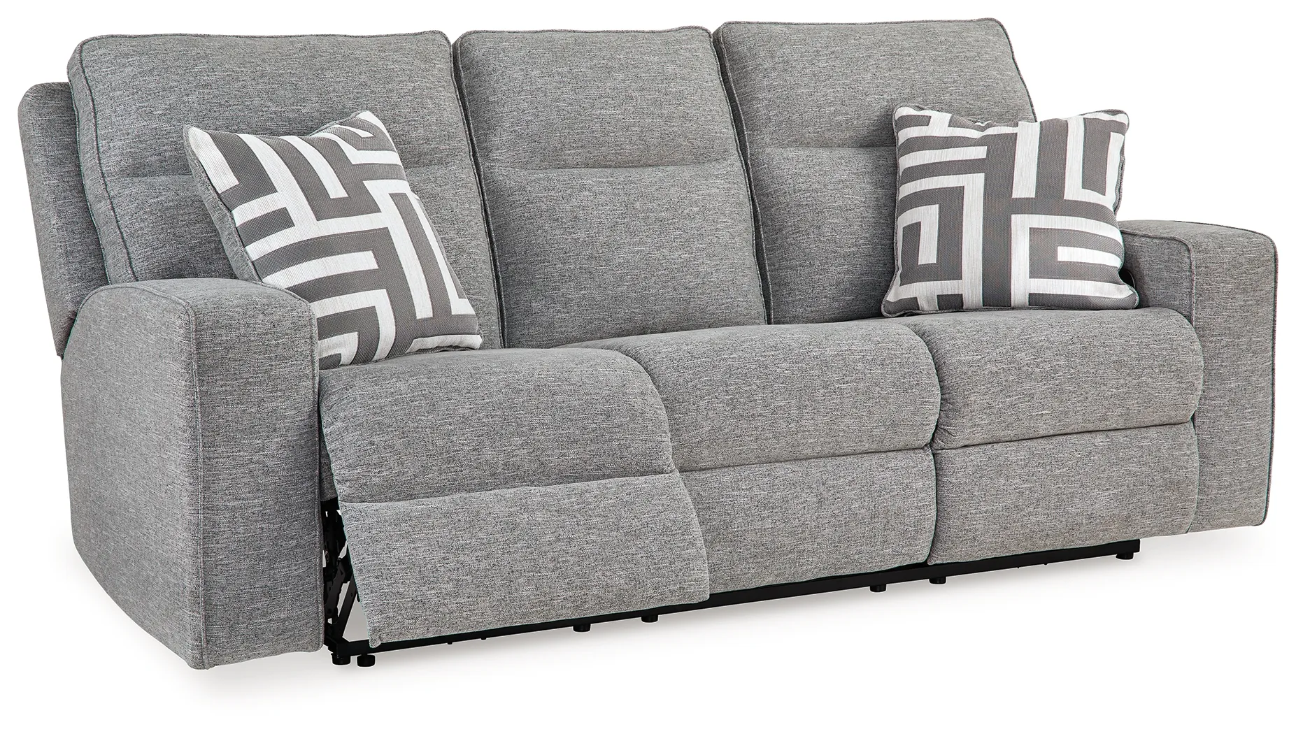 The Biscoe Power Reclining Sofa by Signature Design by Ashley® combines clean-lined contemporary styling with the luxurious comfort of modern reclining technology. Upholstered in durable Next-Gen Nuvella™ performance fabric, this sofa resists stains and fading while offering a soft, inviting feel. Plush cushioning, a zero-gravity reclining mechanism, and adjustable Easy View™ headrests ensure personalized comfort, while an extended ottoman provides plenty of room to stretch out. Designed for both form and function, Biscoe transforms everyday lounging into effortless relaxation.