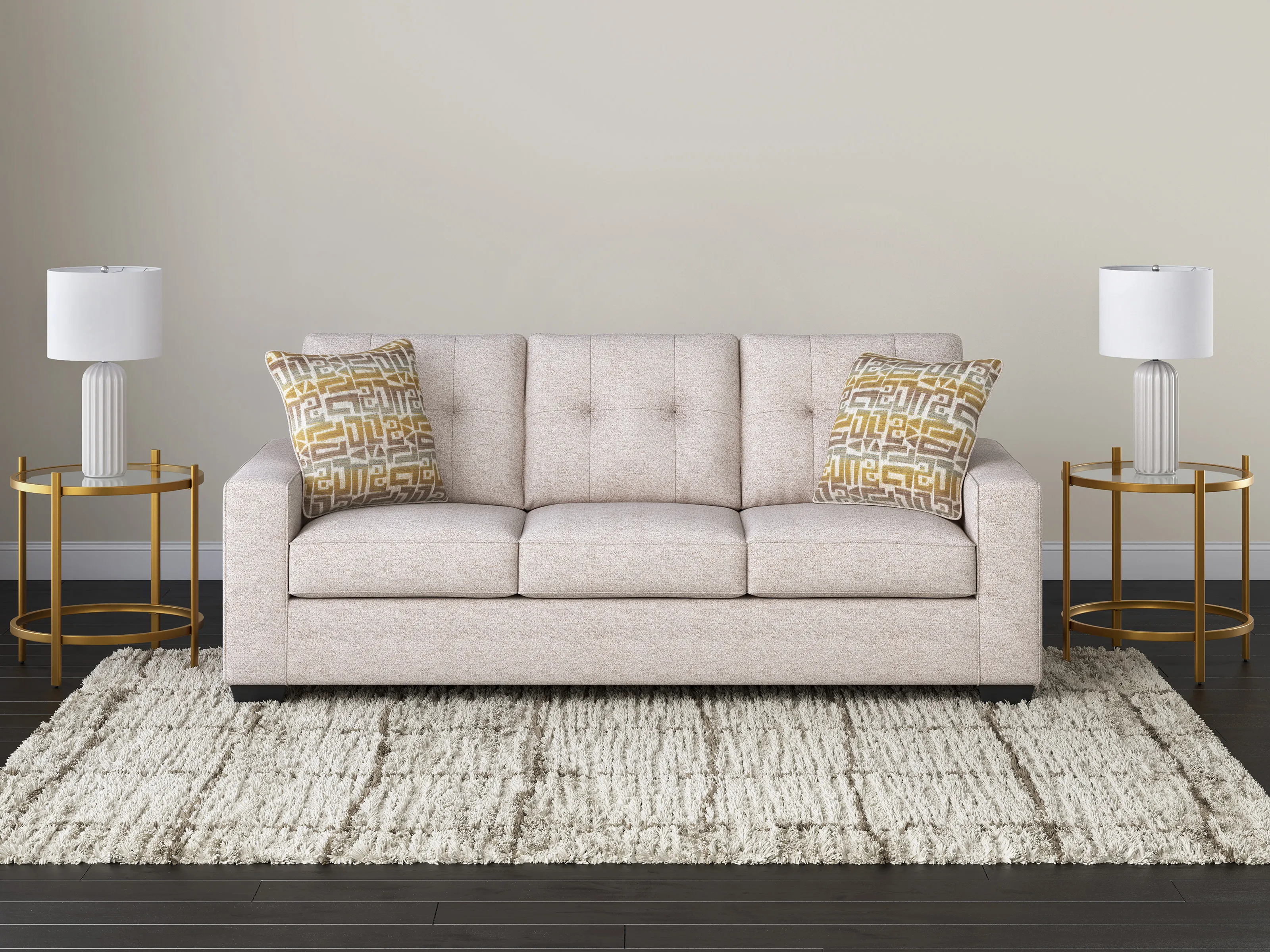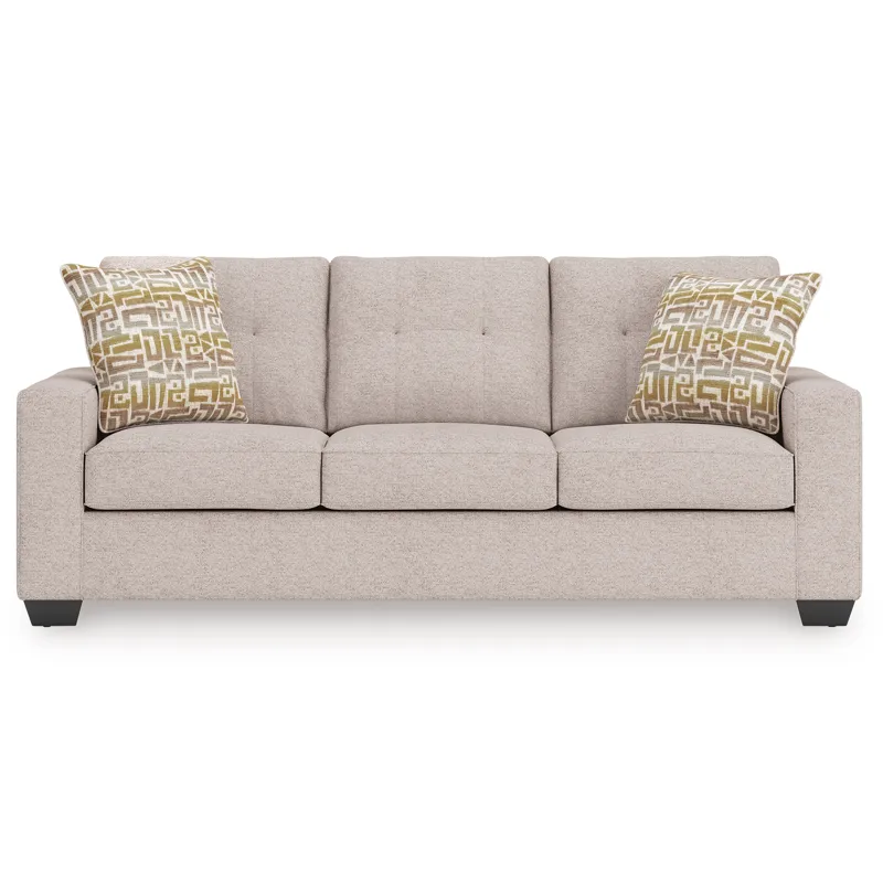 Sincere in its styling, this sofa marries classic function with modern design elements for truly transitional appeal. Its track arms lend a contemporary vibe while soft, durable upholstery ups the comfort level. And with the sofa's goes-with-anything neutral color, styling is made simple. All that’s left for you to do is to sit back and relax.