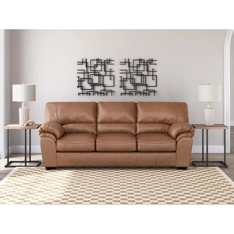 The Ashley Whitlock Sofa blends modern comfort with effortlessly stylish design, offering an inviting centerpiece for any contemporary living space. Wrapped in soft, durable faux leather—available in Caramel or Umber—it delivers the upscale look of real leather without the maintenance. High-fashion jumbo stitching and clean, structured lines add refined detail, while plush cushions provide long-lasting comfort perfect for everyday lounging. With its warm tones and versatile styling, Whitlock makes it easy to elevate your home with cozy sophistication.