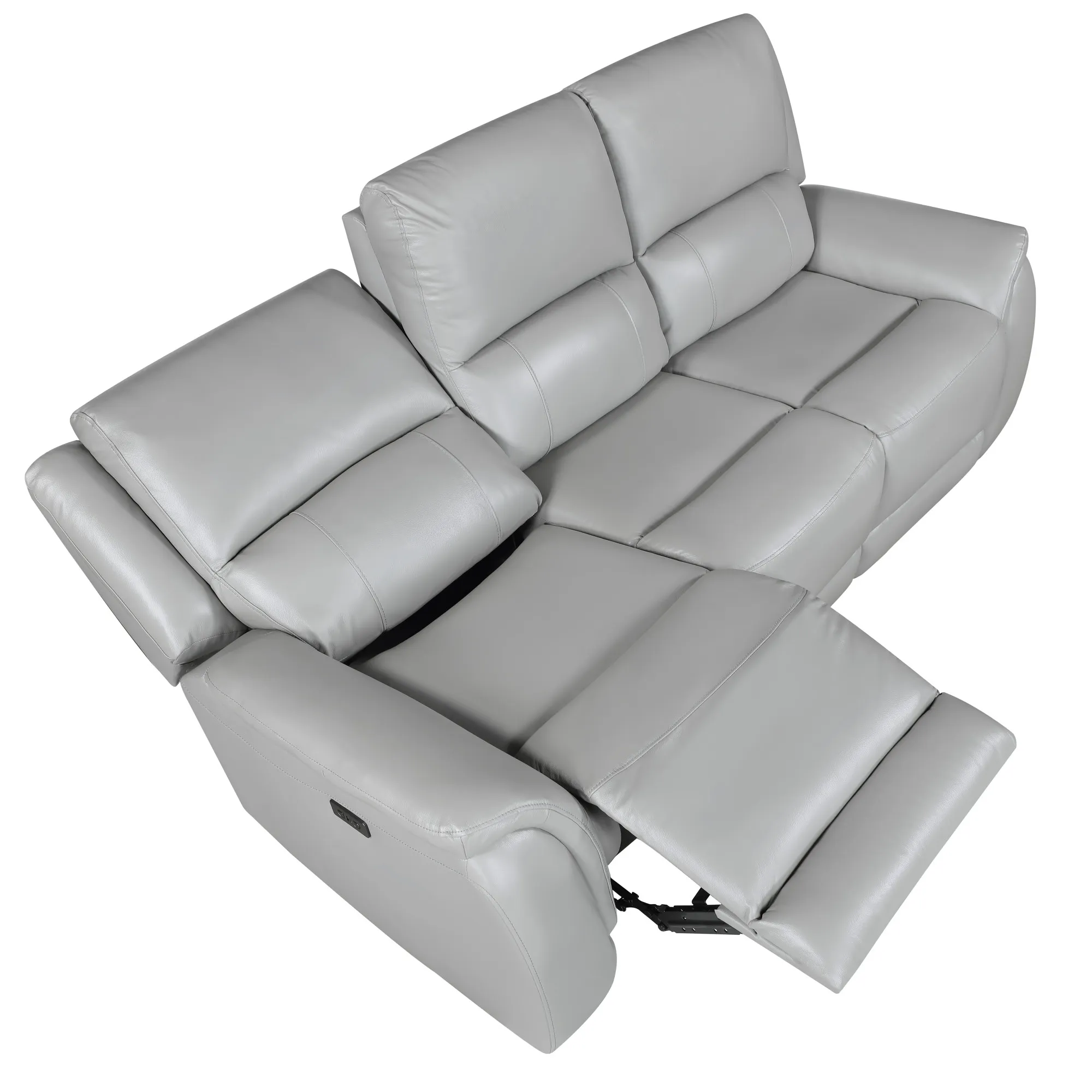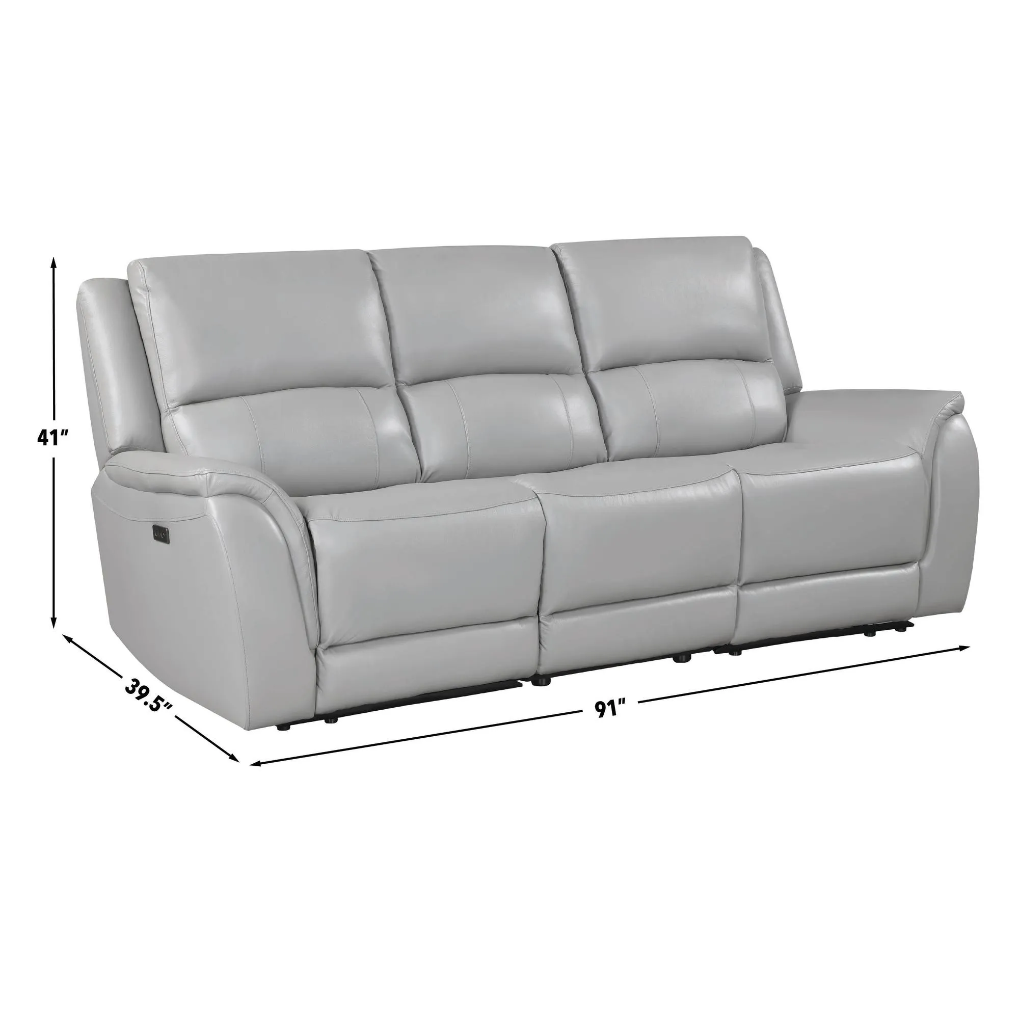 Redefine comfort with the Alexandria 3-Piece Reclining Sofa in Stone. Expertly upholstered in premium neutral leather, it blends seamlessly into any space with timeless appeal. Each end seat offers a smooth 143-degree power recline with just 3″ of wall clearance, ideal for modern living. Generous 7-inch cushions provide deep, supportive seating, while built-in USB ports keep your devices charged and close. Designed for style, function, and comfort, the Alexandria Sofa is your invitation to relax in effortless luxury.