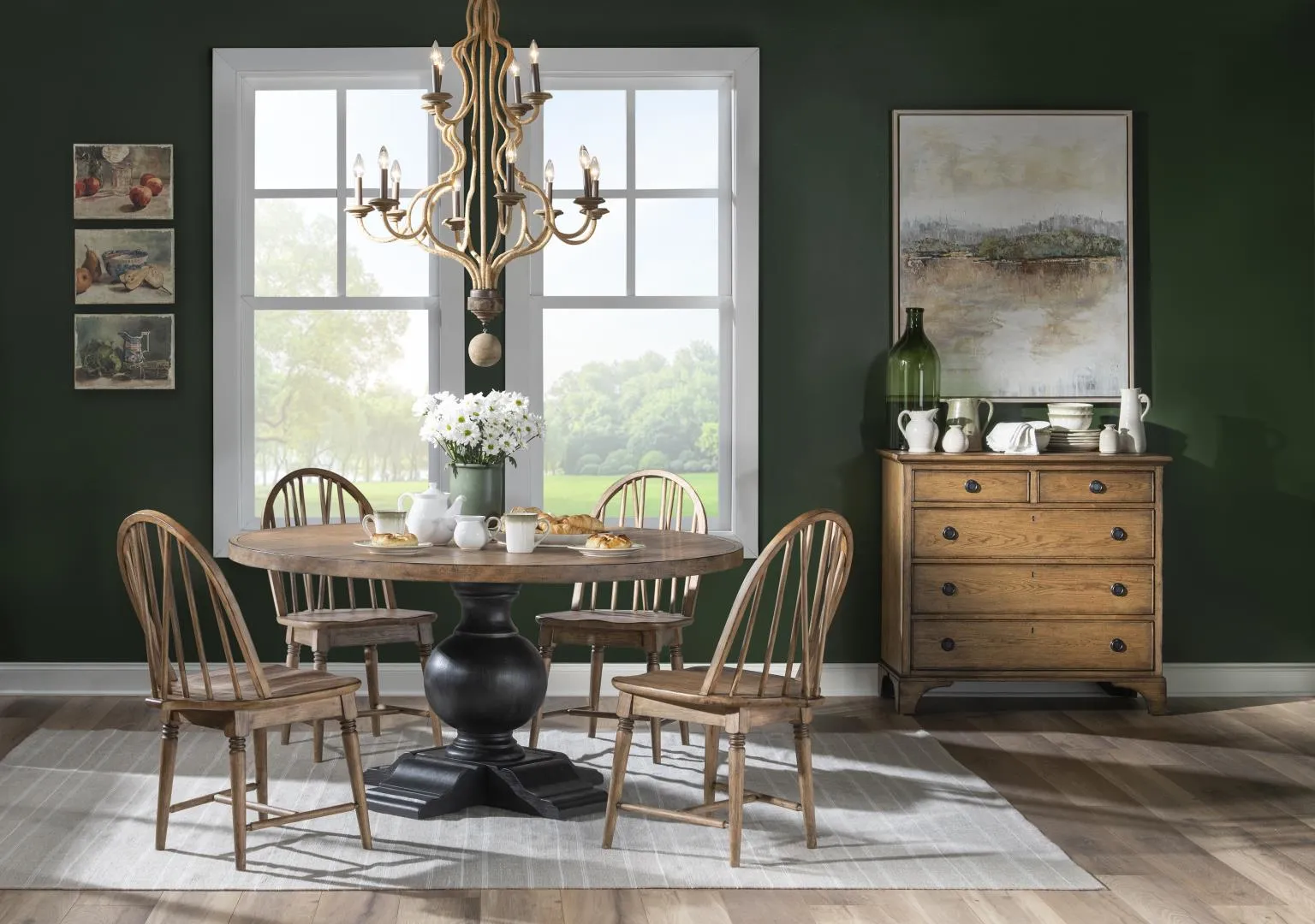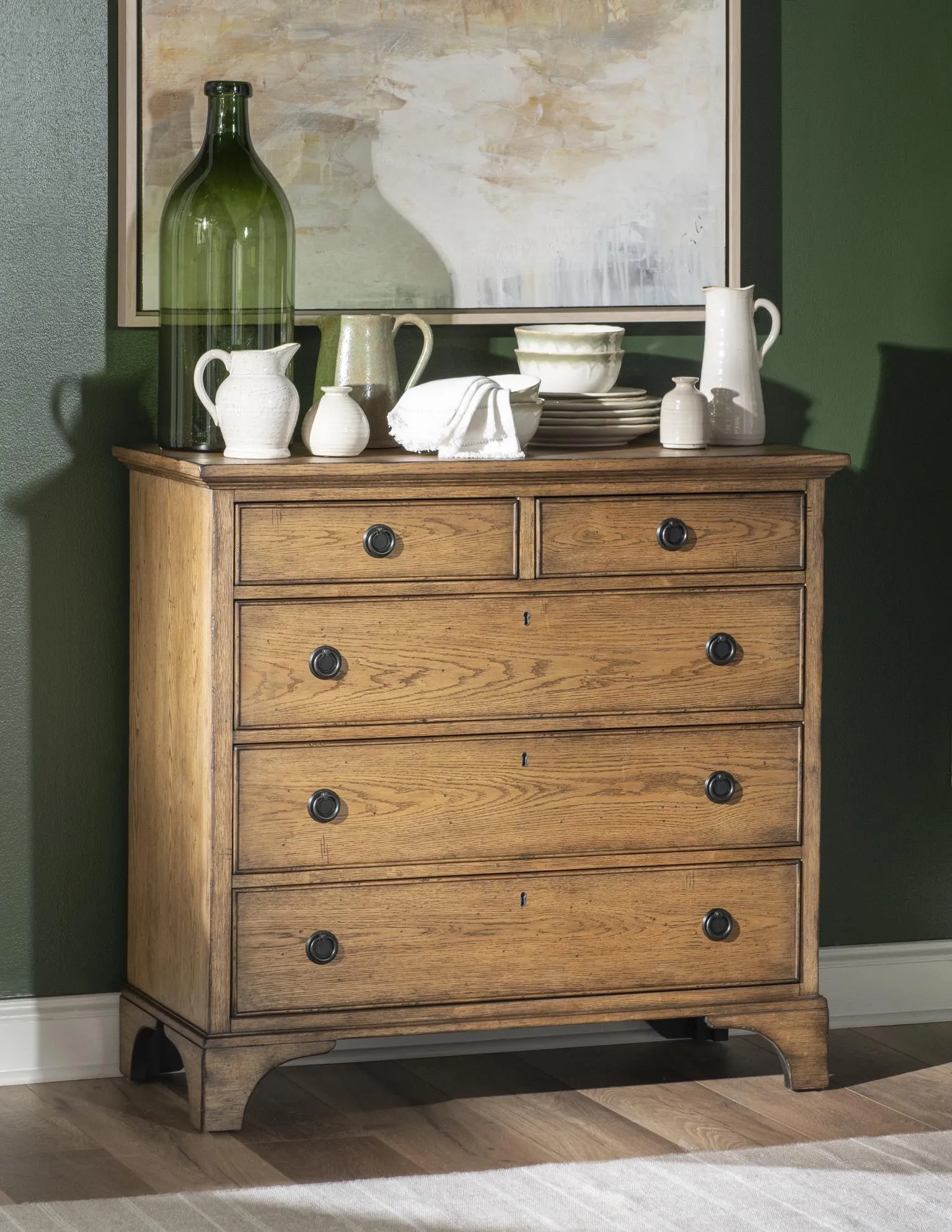 The Vintage Market 5 Drawer Accent Chest by Legacy Classic Furniture brings timeless farmhouse character and everyday functionality to any room in the home. Shown in the warm Barnwood finish, this chest features five spacious drawers accented by arched feet and cast iron–finished hardware, blending rustic charm with refined craftsmanship. Built from select hardwoods and oak veneers, it offers durable storage with a classic, heirloom-inspired aesthetic. The hand-applied aged finish highlights the natural wood grain, creating a versatile piece that works beautifully in bedrooms, entryways, or living spaces—perfectly embodying the warm + cozy + family feeling at the heart of the Country Living Collection.