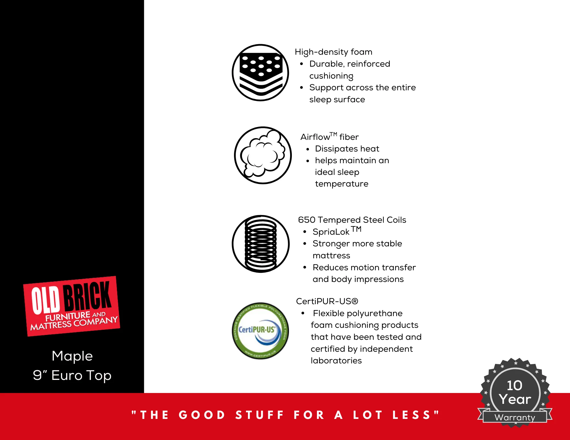 The Maple Euro Top 9" Mattress by Restonic may be available at Old Brick Furniture & Mattress Co. in the