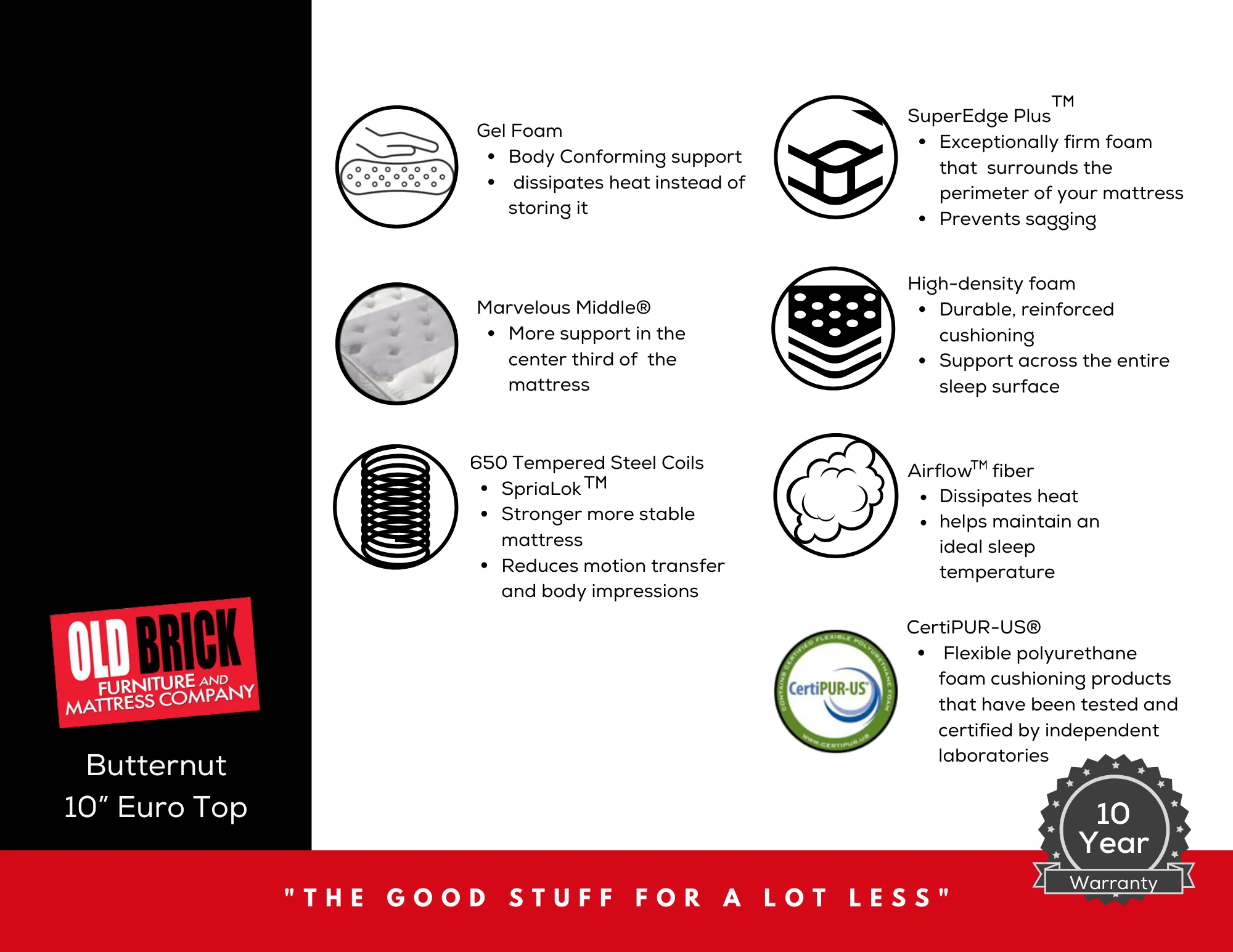 The Butternut Euro Top 10" Mattress by Restonic may be available at Old Brick Furniture & Mattress Co. in the