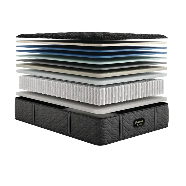 Discover where luxury meets innovation with Beautyrest Black®. Designed with Triple-Stranded Pocketed Coil® Technology, this mattress offers advanced individualized support and motion separation. Sleep Climate™ Technology works with a Micro Diamond™ Memory Foam upgrade to enhance heat transfer from the mattress, while SurfaceTouch™ Gel Memory Foam and Self-Response™ Latex upgrades conform to the body for responsive pressure relief. Experience our most advanced sleep system with Beautyrest Black®, so you can rest luxuriously.
