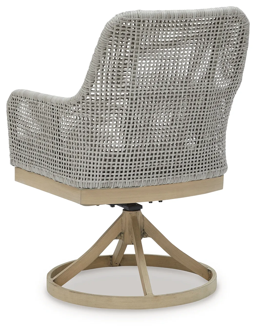 This swivel dining chair invites your casual contemporary style outdoors. With its resin wicker in a chic neutral hue, it expertly marries refined design with durability. Its 360-degree swivel makes it easy to switch from watching the kids at the pool to grabbing a drink from the table. And breezy summer mornings and cold winter nights are made all the more comfortable with high-performance Nuvella+â„¢ fabric covering the seat cushion.