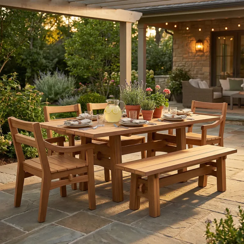 - Water-Friendly Design:Â Slatted tabletop allows rain to drain easily, keeping surfaces drier.