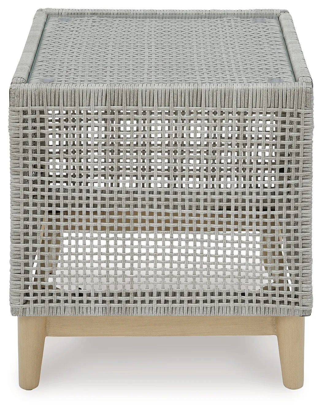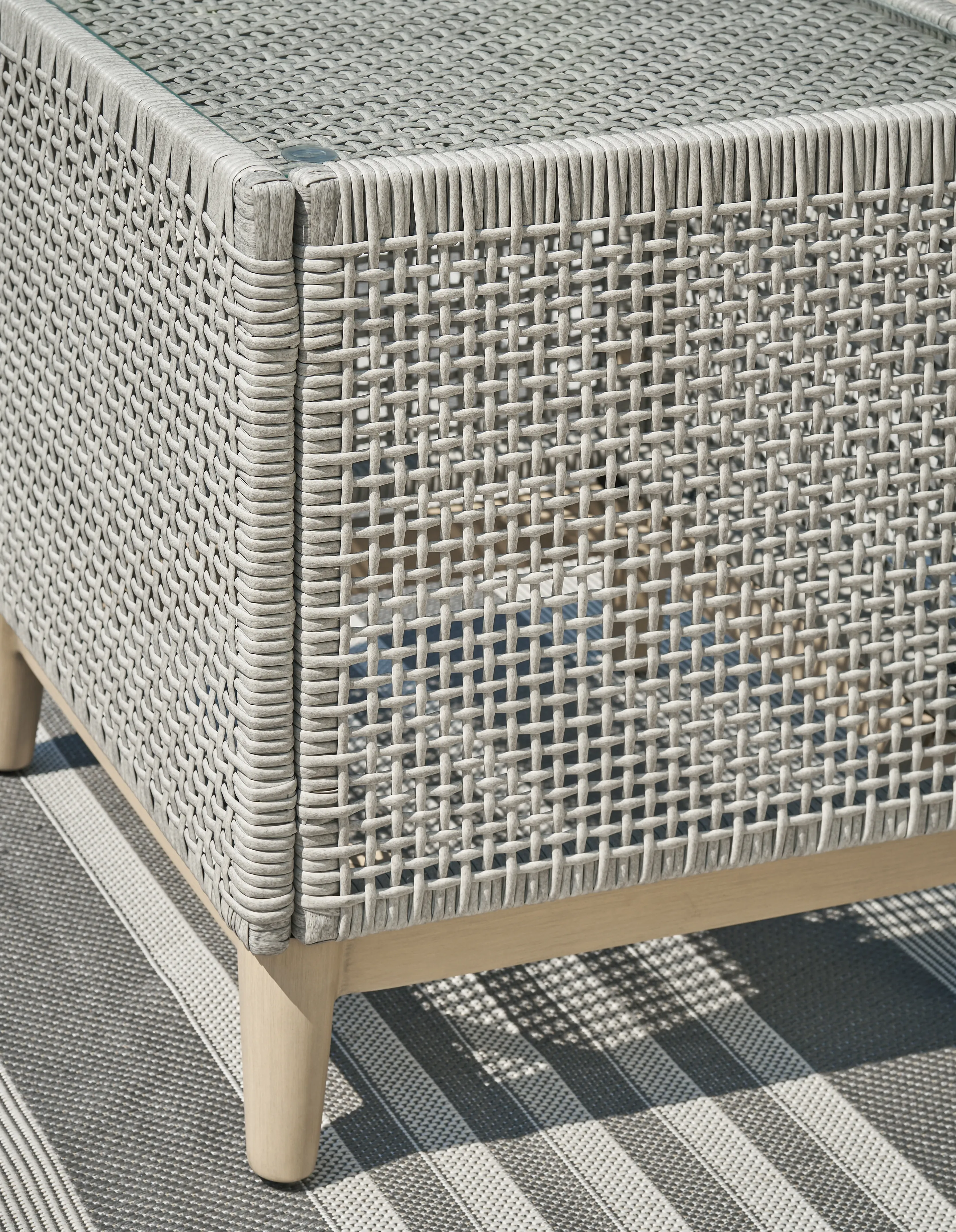 This end table invites your casual contemporary style outdoors. With its resin wicker in a chic neutral hue, it expertly marries refined design with durability. Breezy summer mornings and cold winter nights are made all the more enjoyable with a glass tabletop on hand to hold beverages, snacks and your latest poolside read.